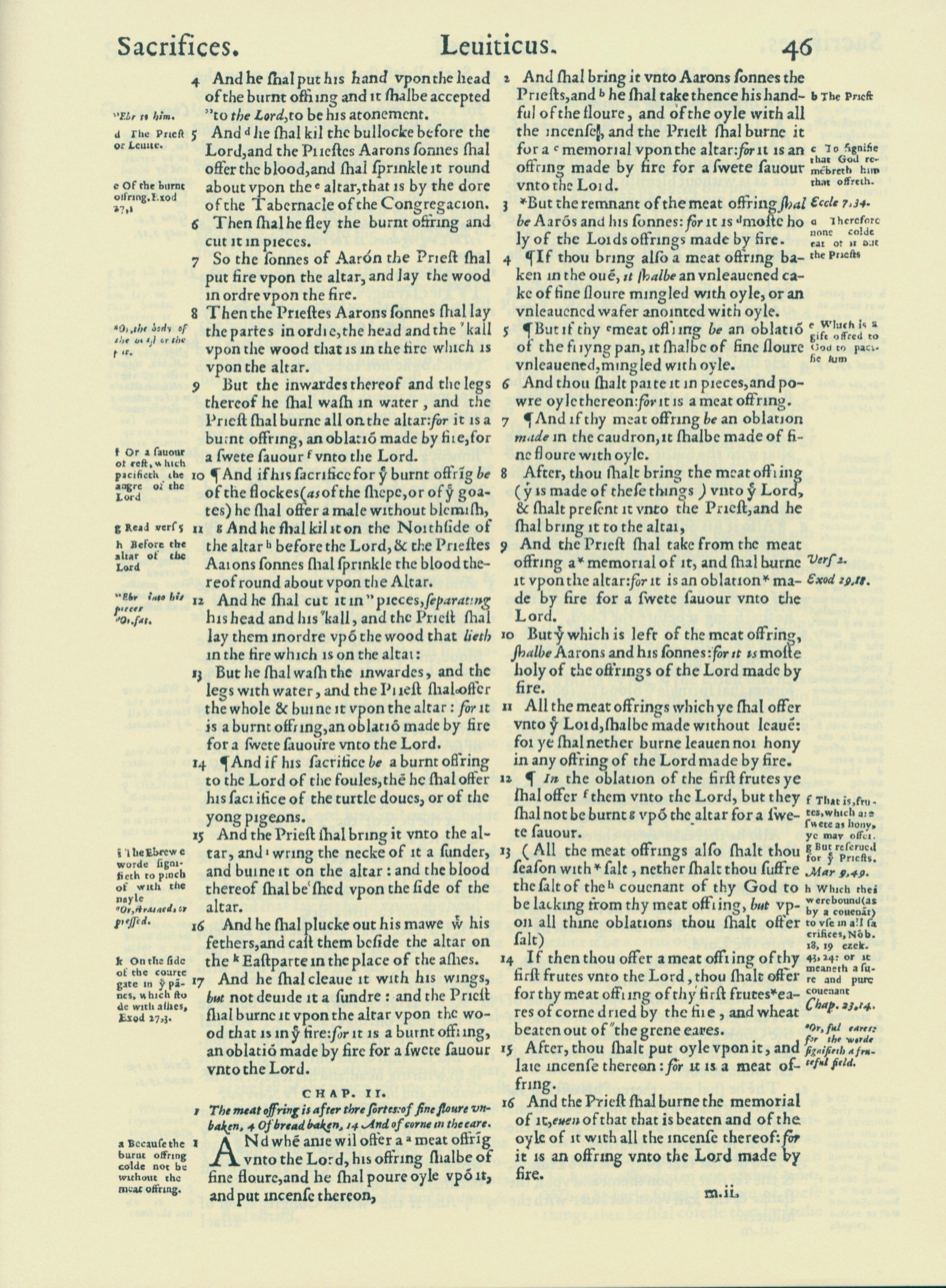 1560年THE BIBLE AND HOLY SCRIPTURES 利未記 1 章 4 節到 2 章 16 節