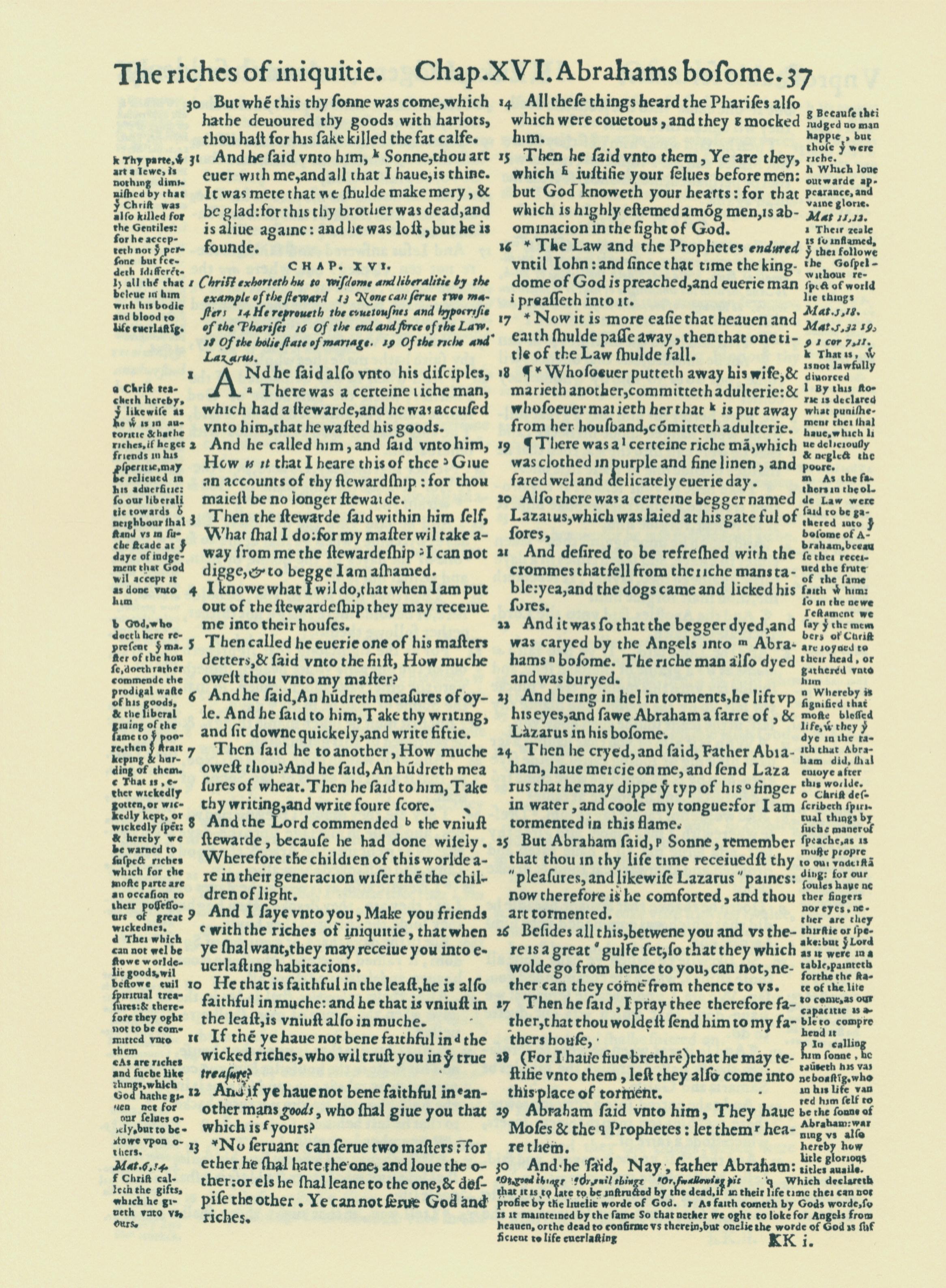 1560年THE BIBLE AND HOLY SCRIPTURES 路加福音 15 章 30 節到 16 章 30 節