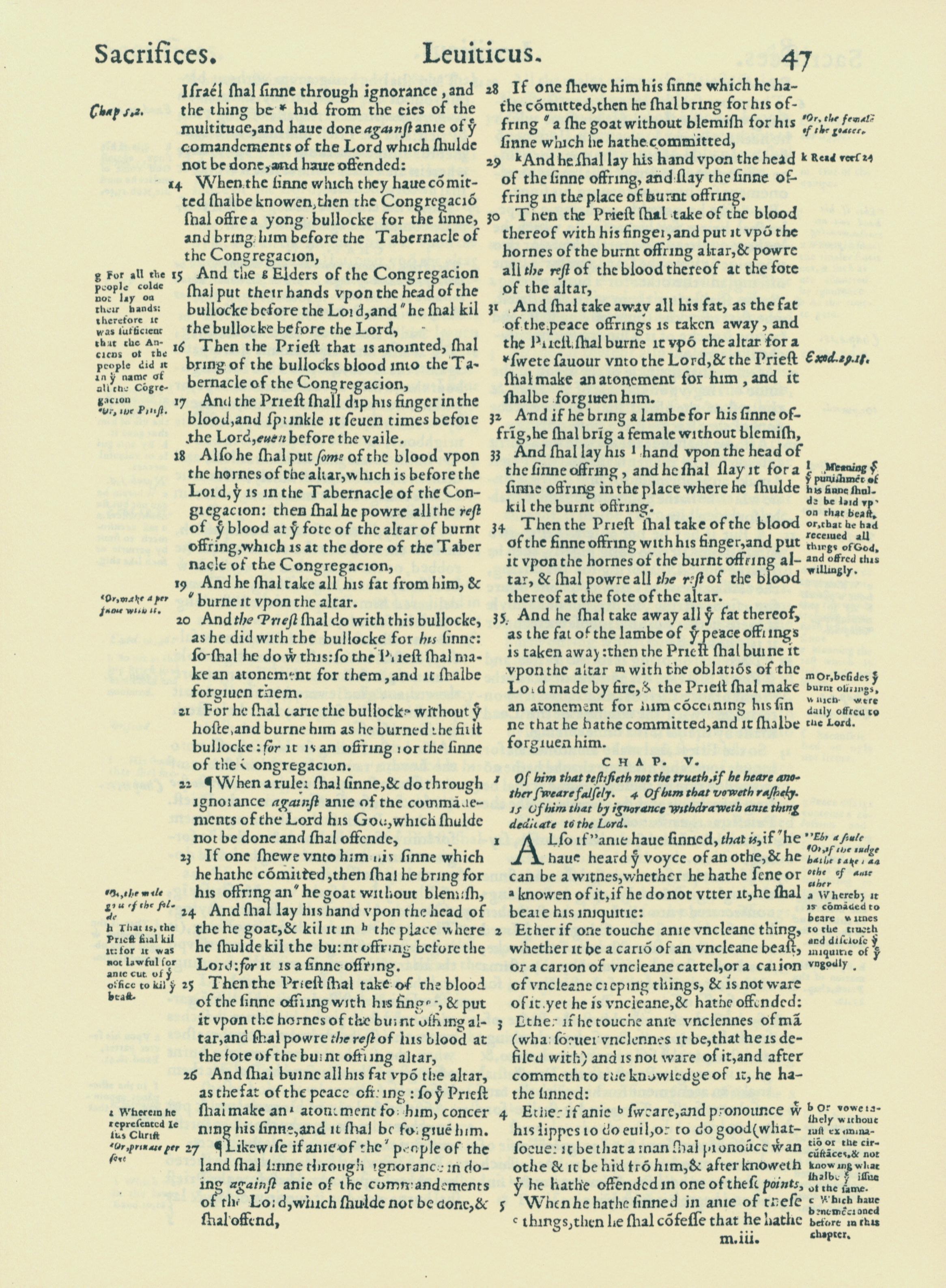 1560年THE BIBLE AND HOLY SCRIPTURES 利未記 4 章 14 節到 5 章 5 節