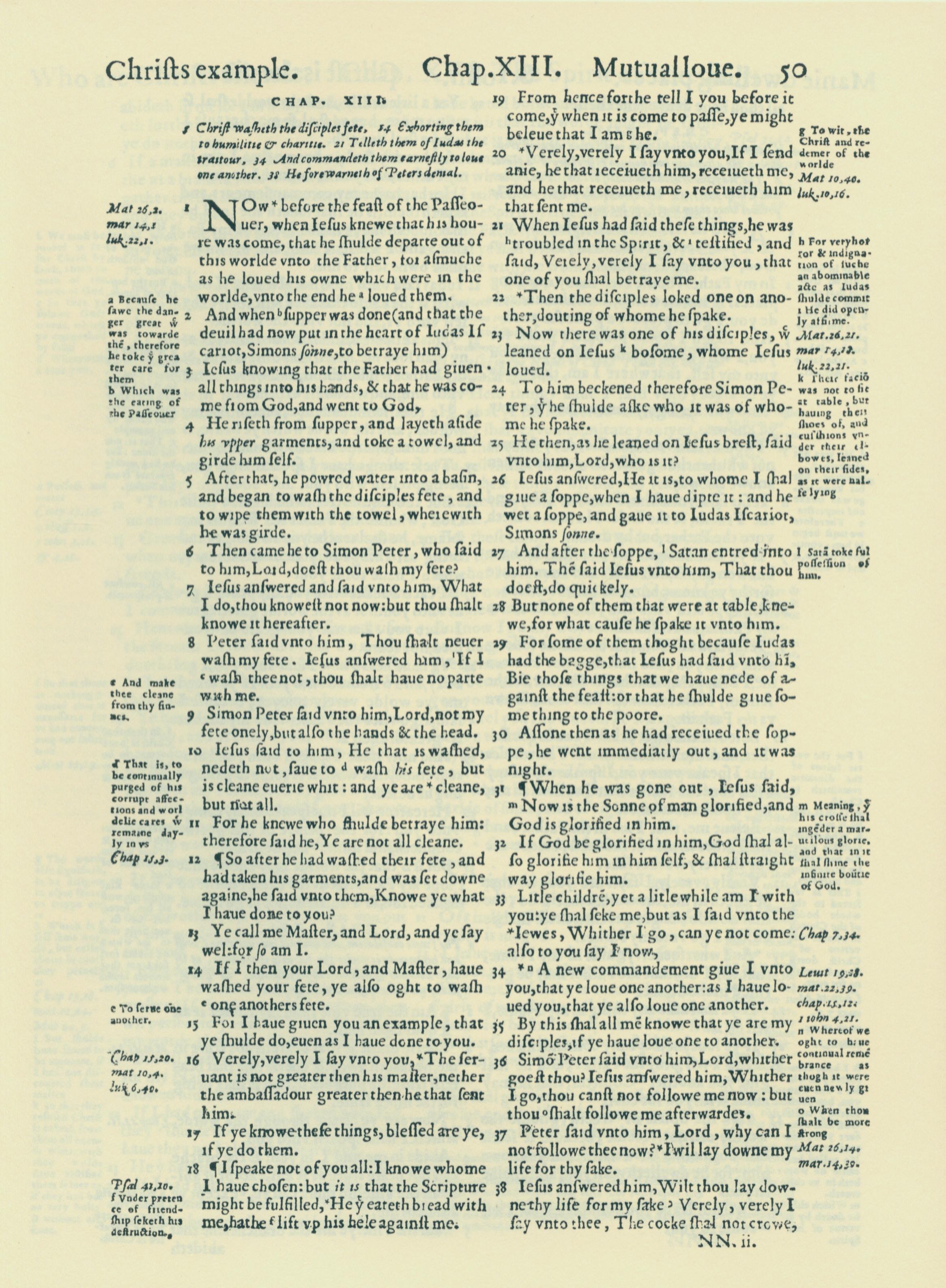 1560年THE BIBLE AND HOLY SCRIPTURES 約翰福音 13 章 1 節到 13 章 38 節
