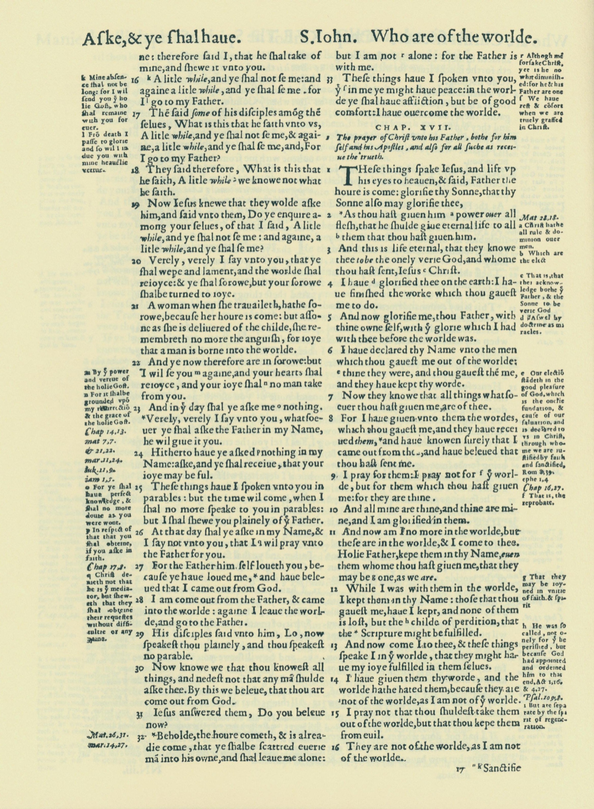 1560年THE BIBLE AND HOLY SCRIPTURES 約翰福音 16 章 16 節到 17 章 16 節
