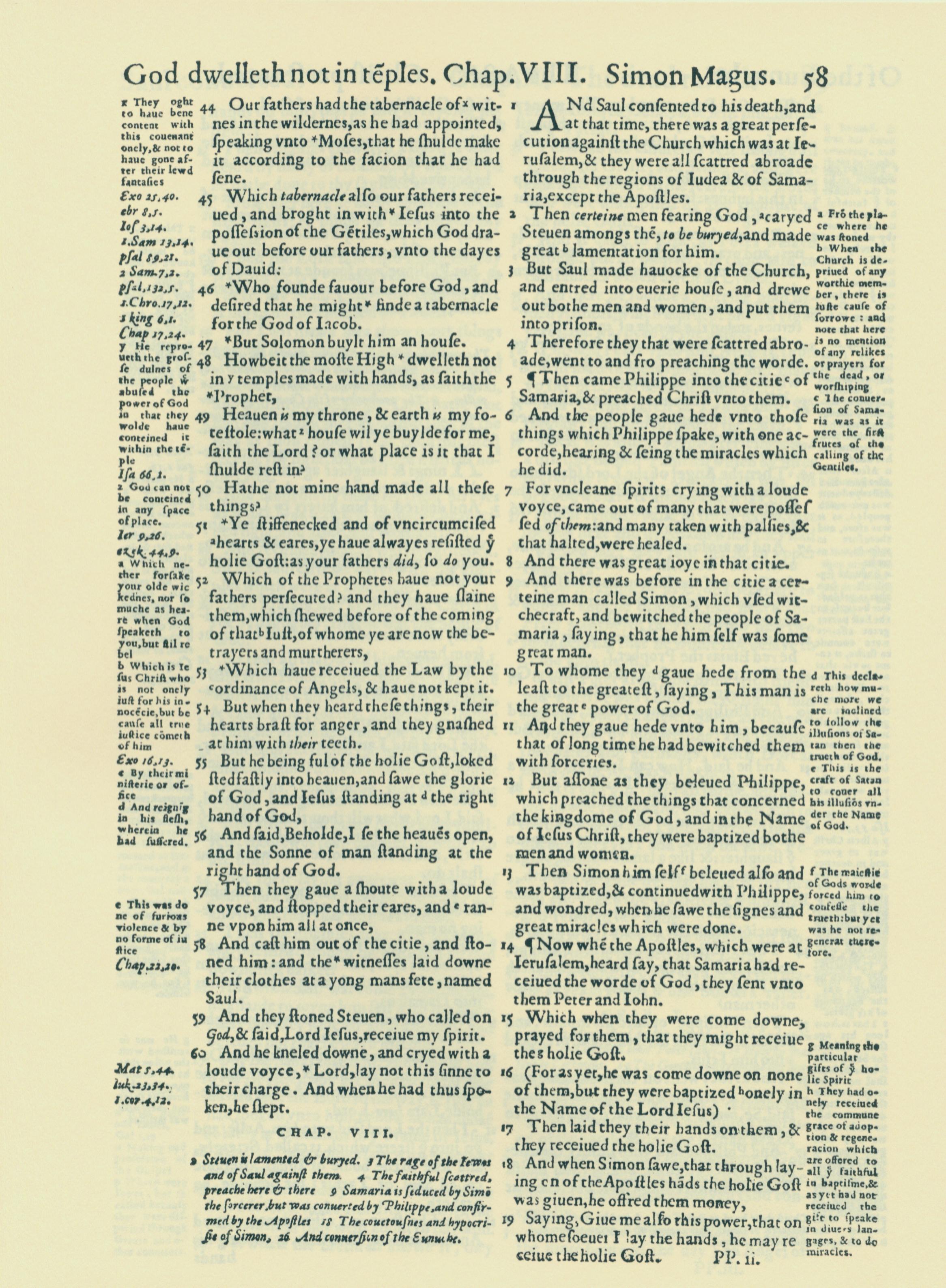 1560年THE BIBLE AND HOLY SCRIPTURES 使徒行傳 7 章 44 節到 8 章 19 節