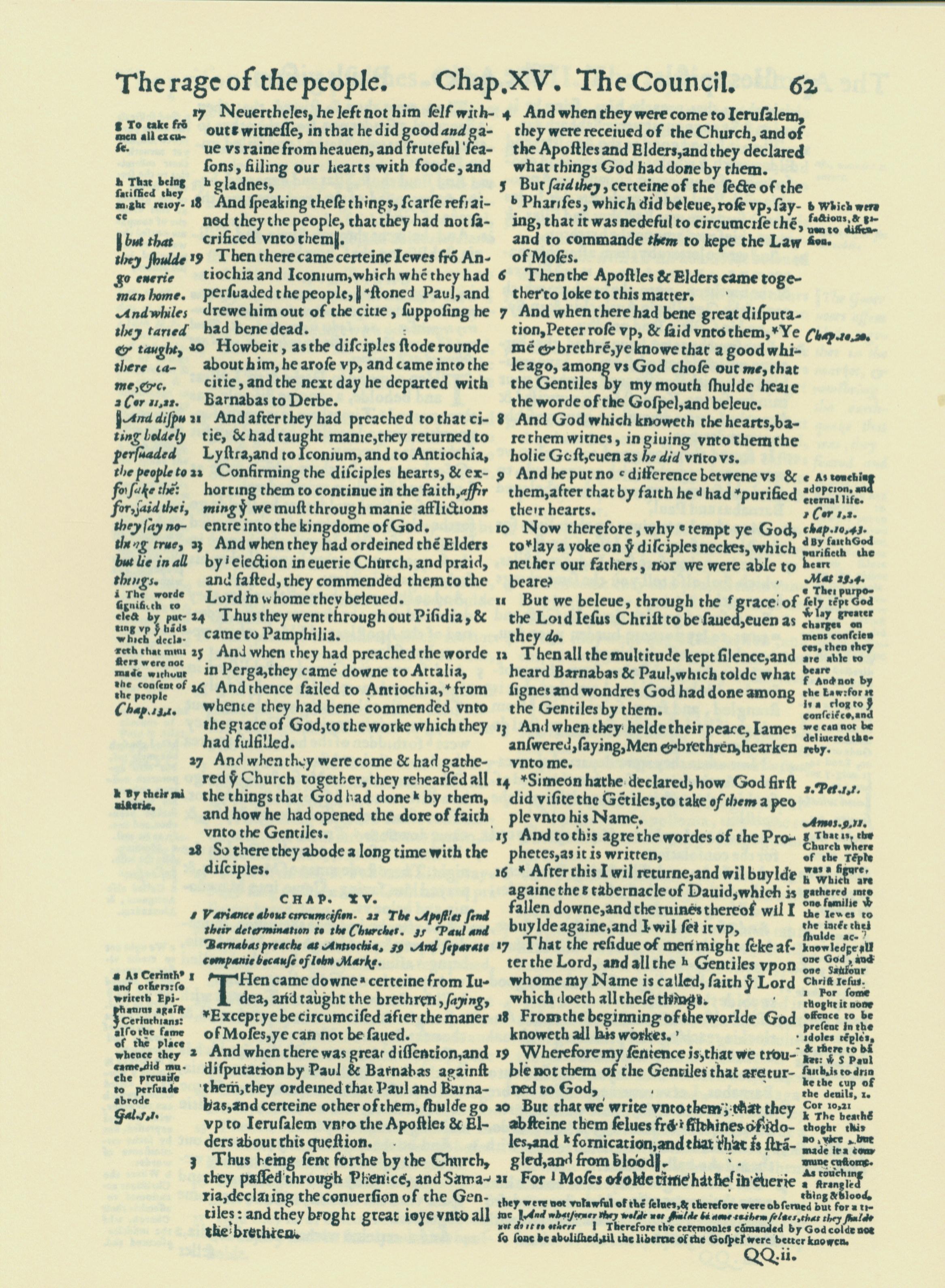 1560年THE BIBLE AND HOLY SCRIPTURES 使徒行傳 14 章 17 節到 15 章 21 節