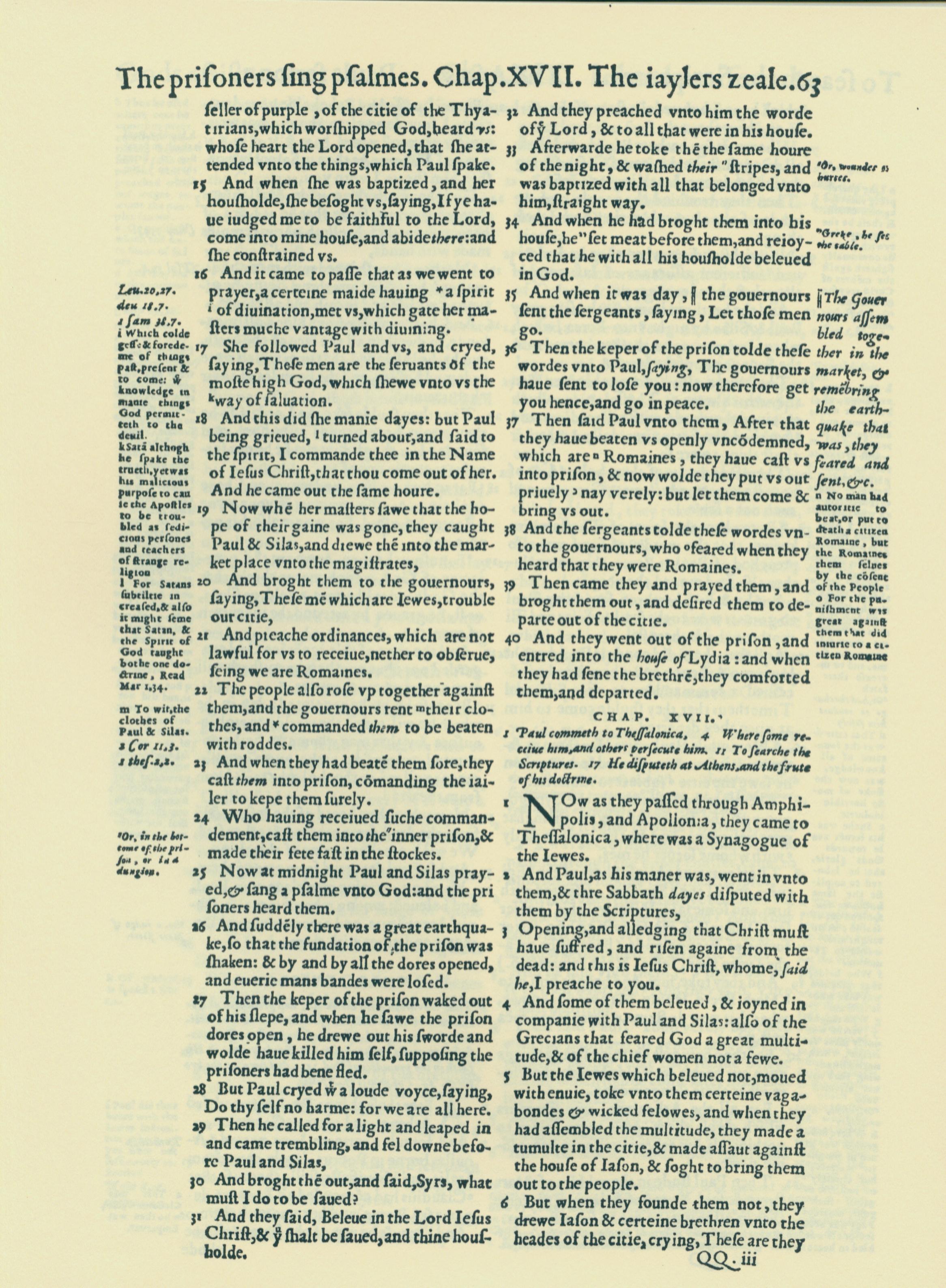 1560年THE BIBLE AND HOLY SCRIPTURES 使徒行傳 16 章 15 節到 17 章 6 節