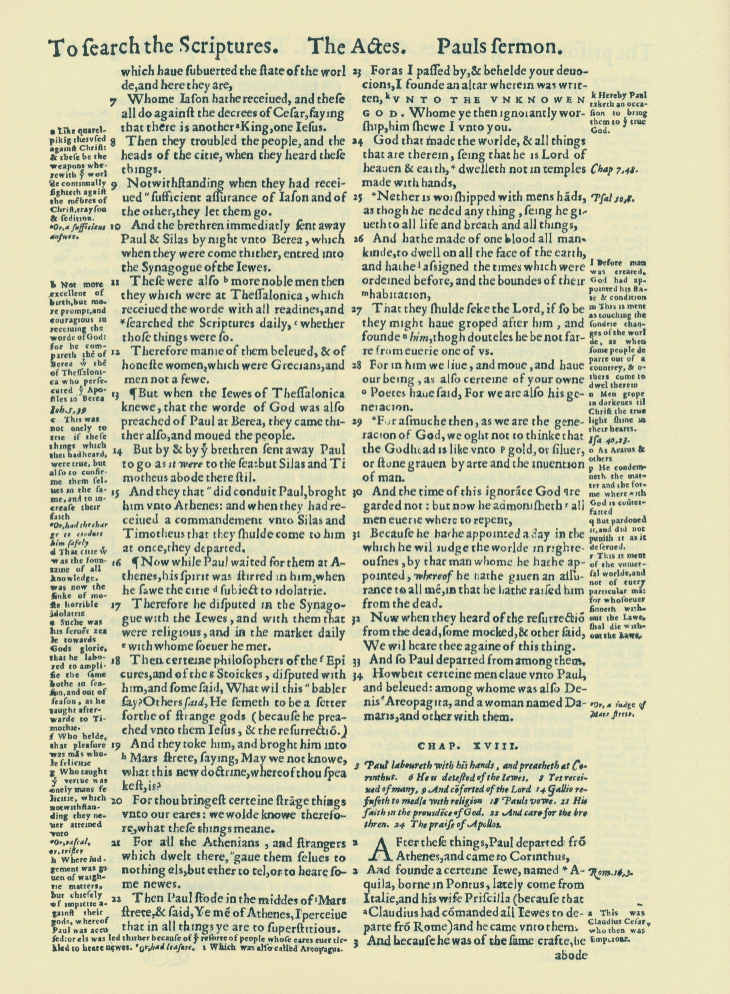 1560年THE BIBLE AND HOLY SCRIPTURES 使徒行傳 17 章 7 節到 18 章 3 節