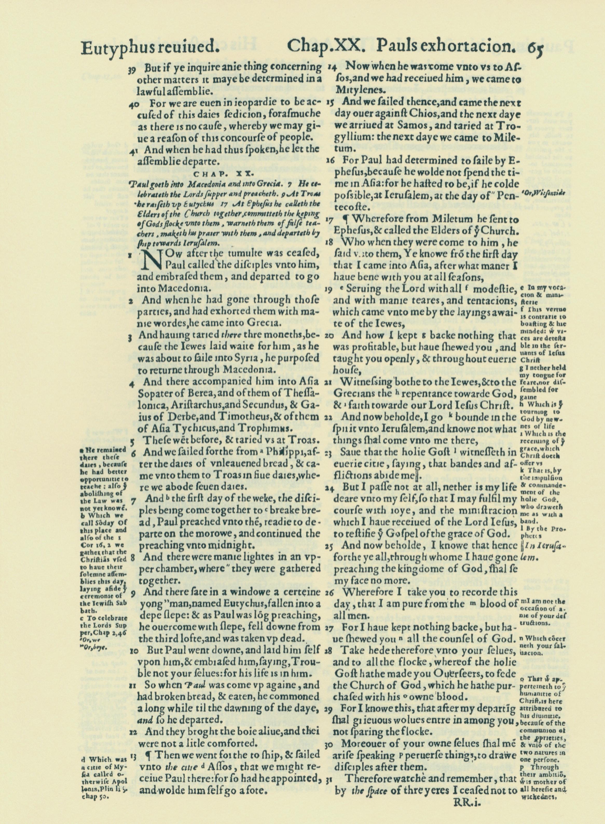 1560年THE BIBLE AND HOLY SCRIPTURES 使徒行傳 19 章 39 節到 20 章 31 節