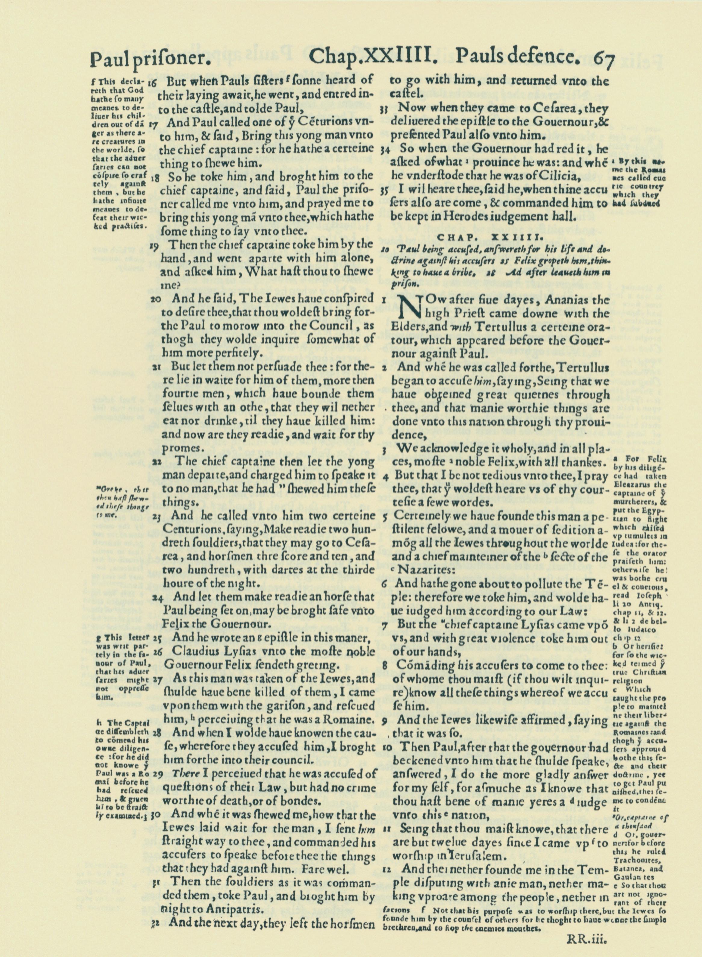1560年THE BIBLE AND HOLY SCRIPTURES 使徒行傳 23 章 16 節到 24 章 12 節