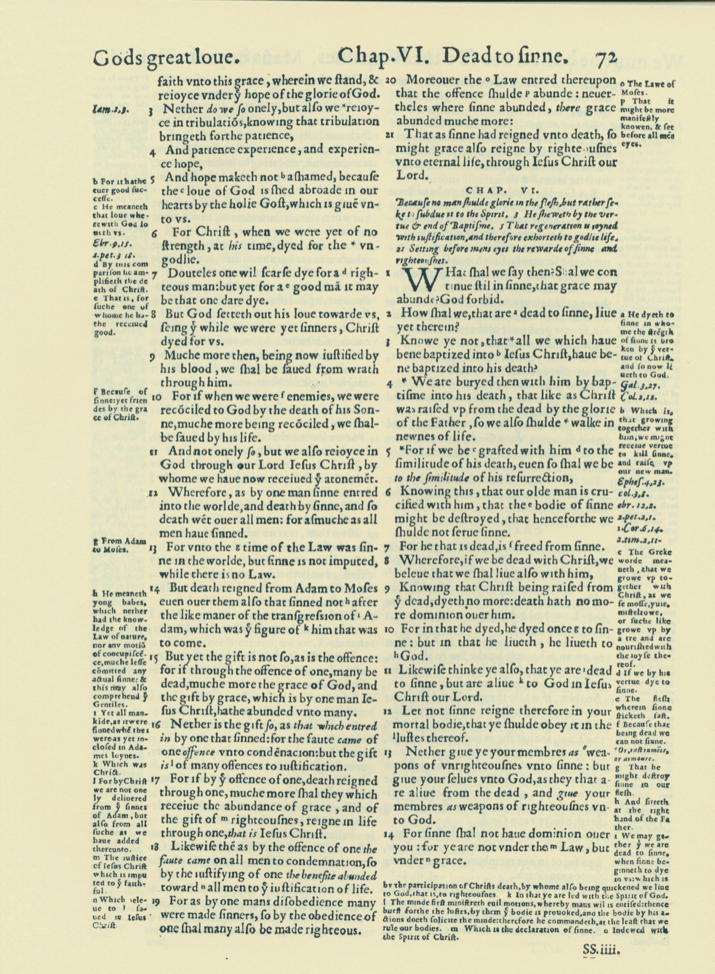 1560年THE BIBLE AND HOLY SCRIPTURES 羅馬書 5 章 3 節到 6 章 14 節