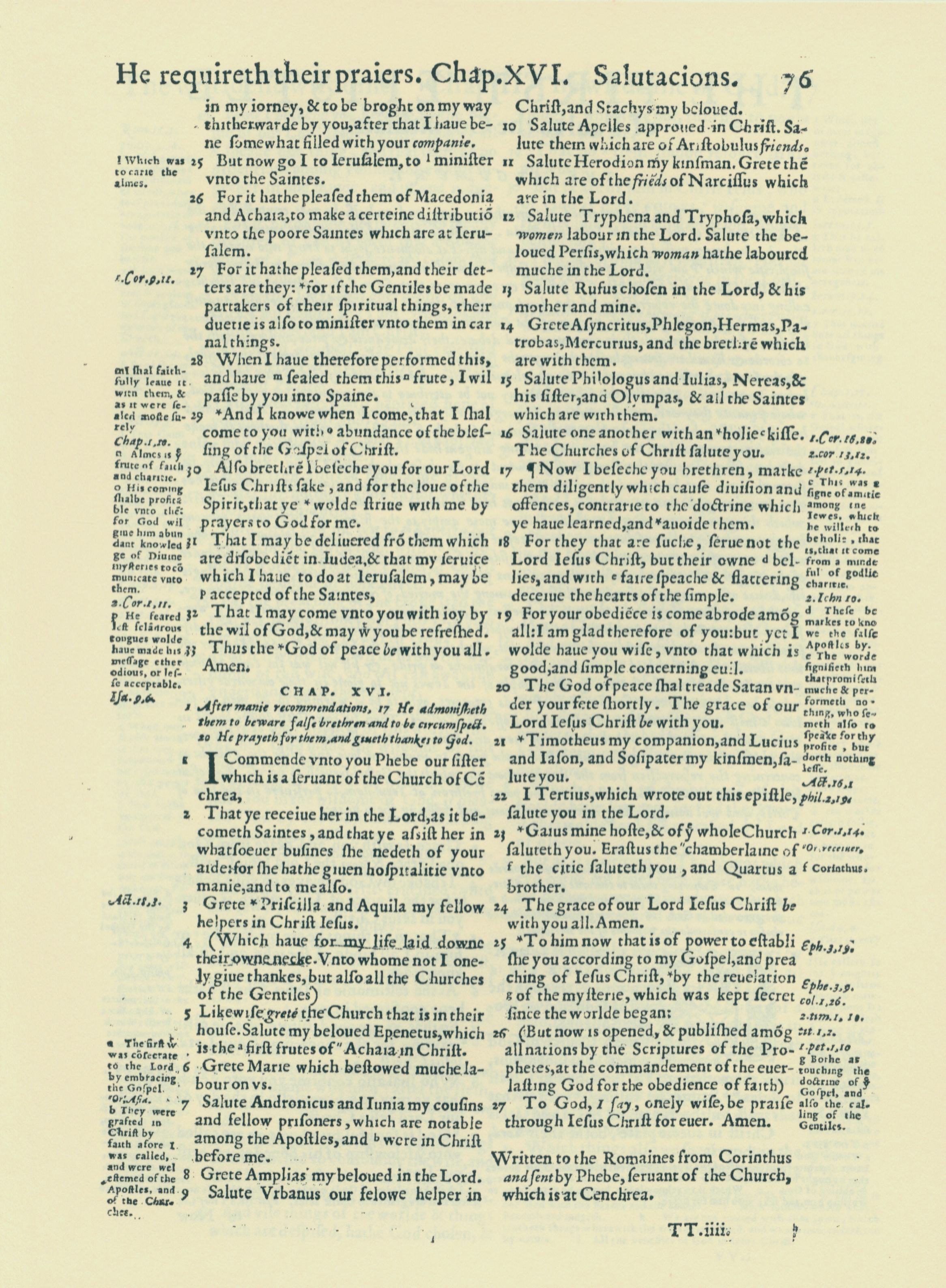 1560年THE BIBLE AND HOLY SCRIPTURES 羅馬書 15 章 25 節到 16 章 27 節