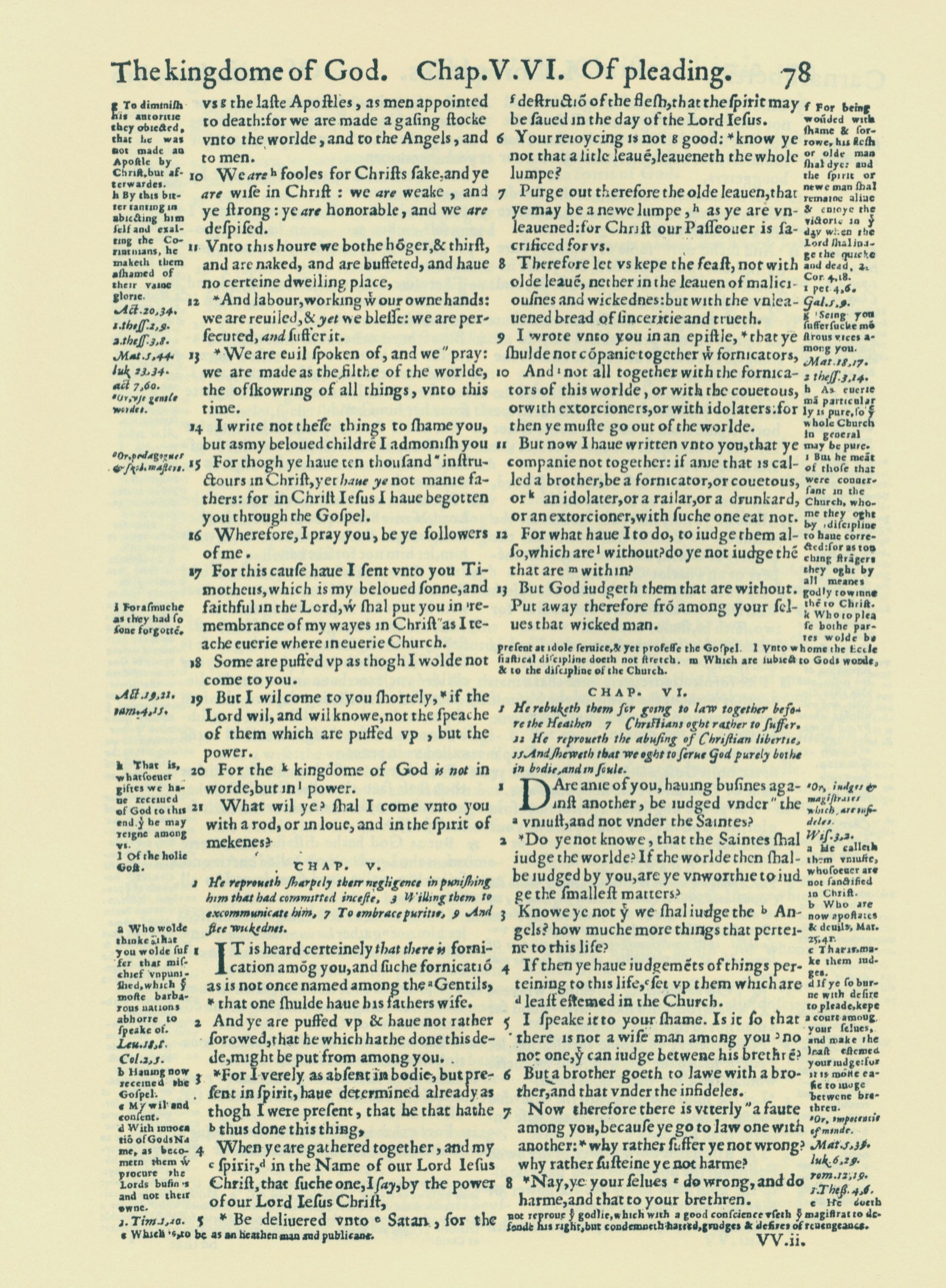 1560年THE BIBLE AND HOLY SCRIPTURES 哥林多前書 4 章 10 節到 6 章 8 節