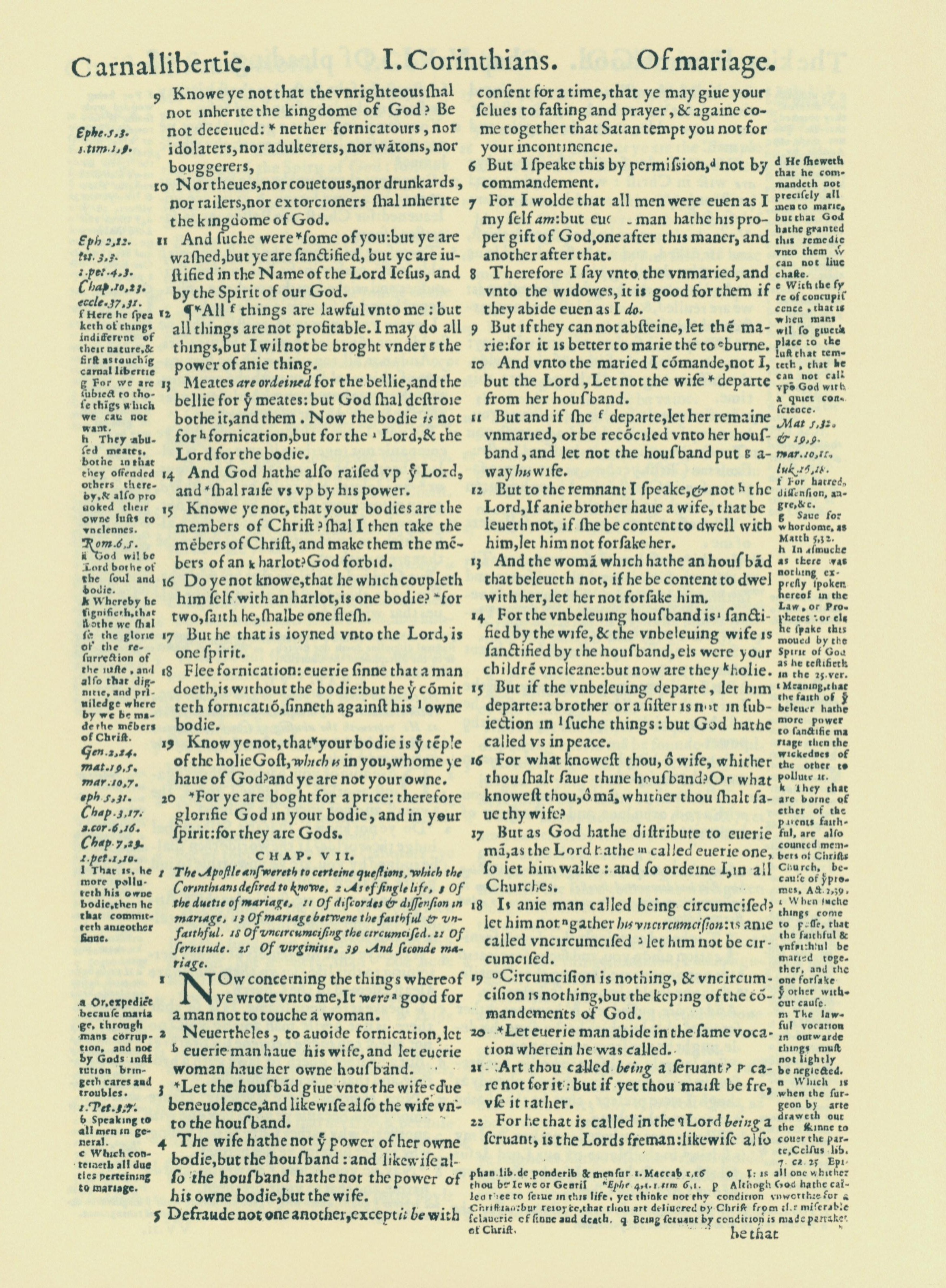 1560年THE BIBLE AND HOLY SCRIPTURES 哥林多前書 6 章 9 節到 7 章 22 節