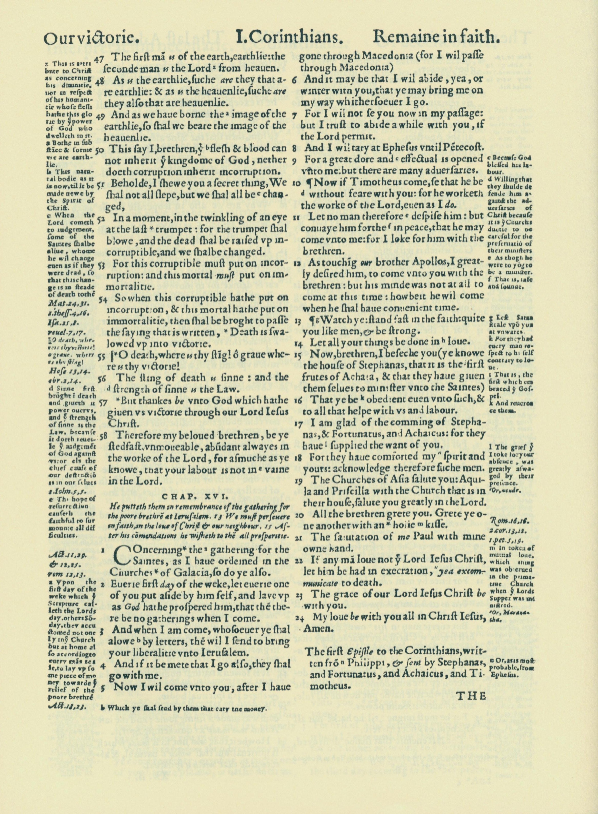 1560年THE BIBLE AND HOLY SCRIPTURES 哥林多前書 15 章 47 節到 16 章 24 節