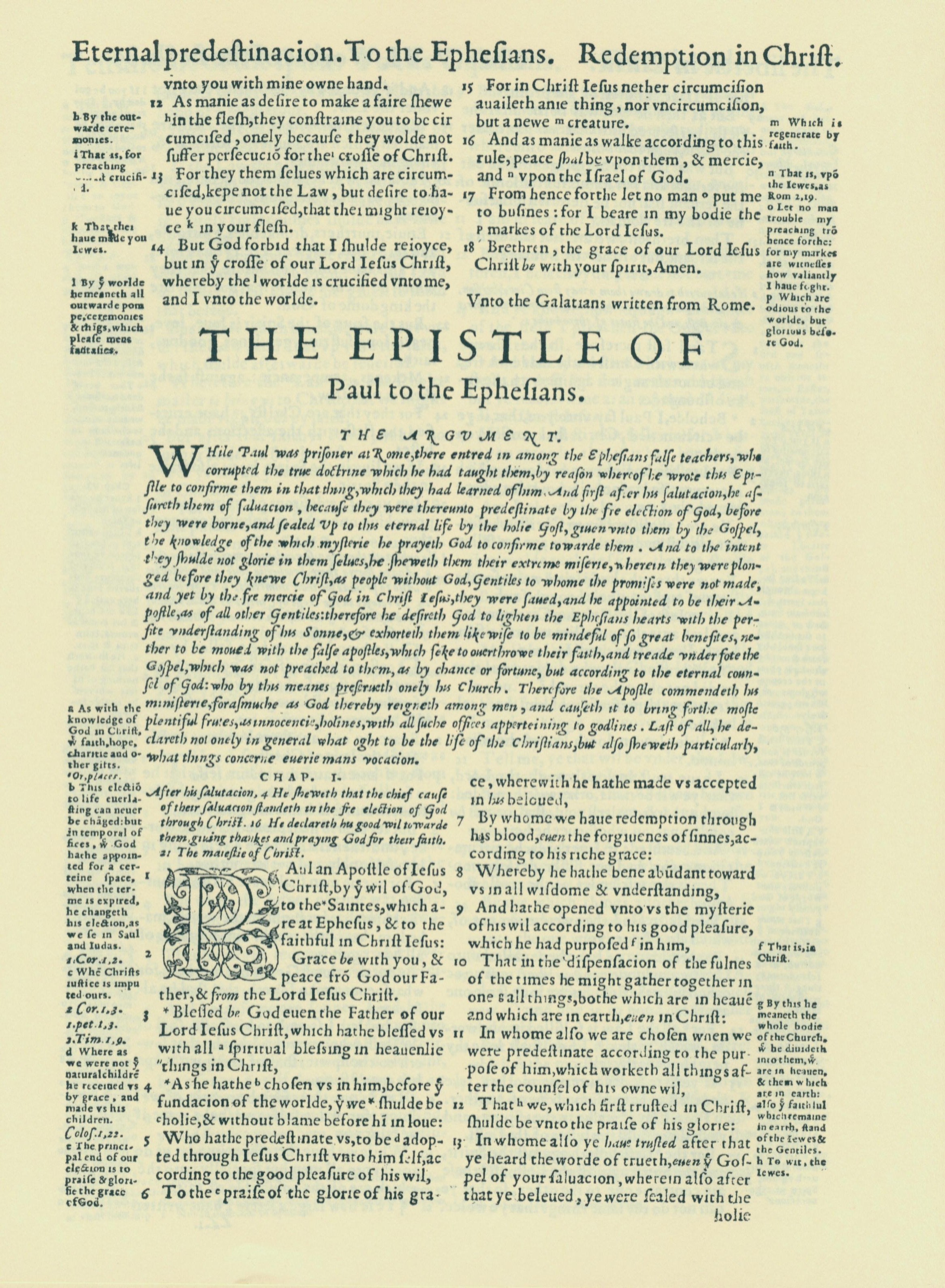 1560年THE BIBLE AND HOLY SCRIPTURES 以弗所書 1 章 1 節到 1 章 13 節
