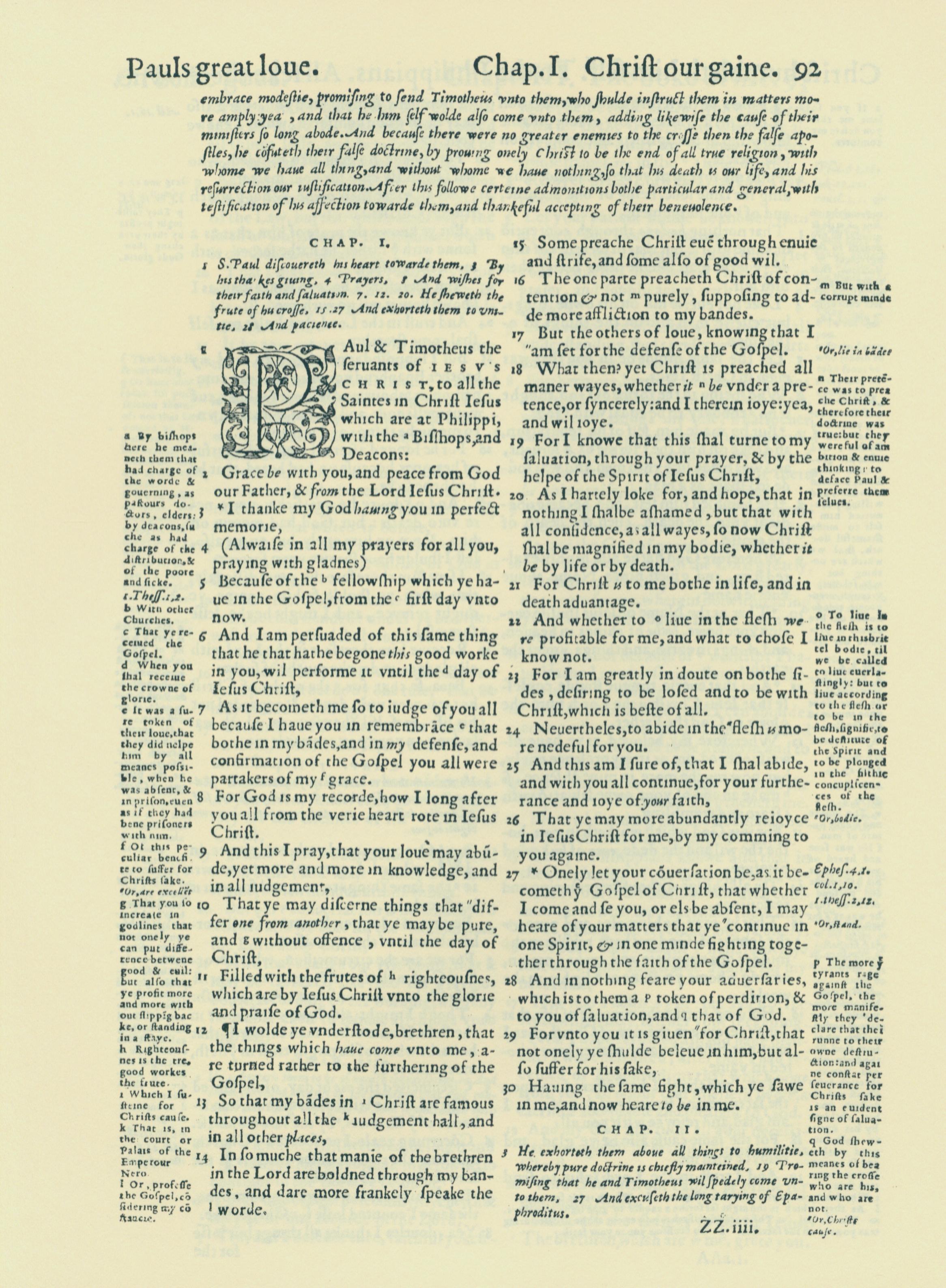 1560年THE BIBLE AND HOLY SCRIPTURES 腓立比書 1 章 1 節到 1 章 30 節