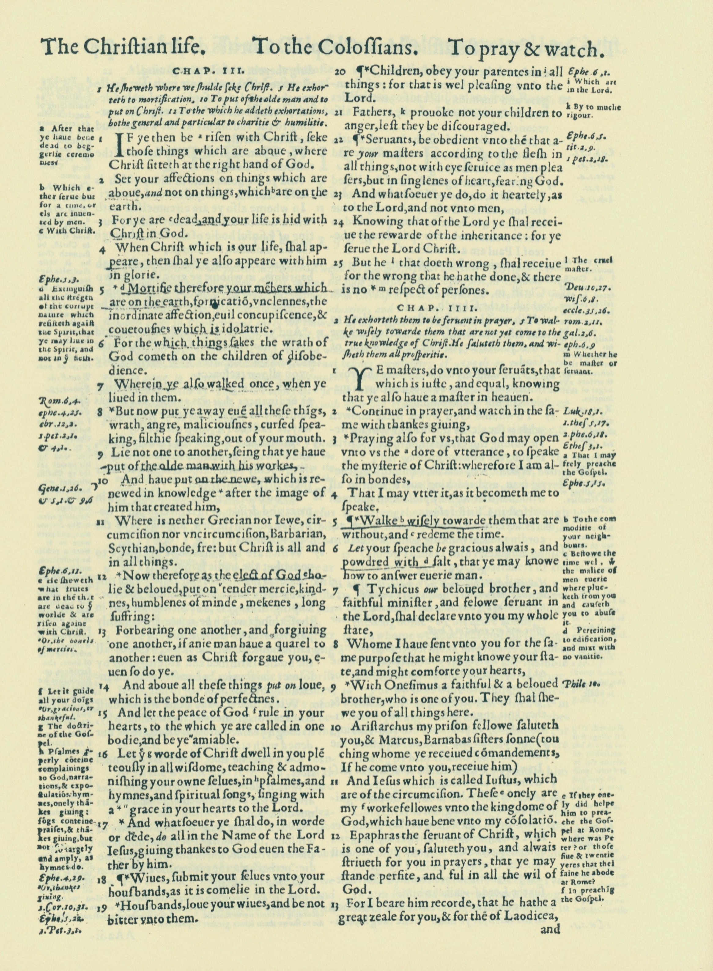 1560年THE BIBLE AND HOLY SCRIPTURES 歌羅西書 3 章 1 節到 4 章 13 節
