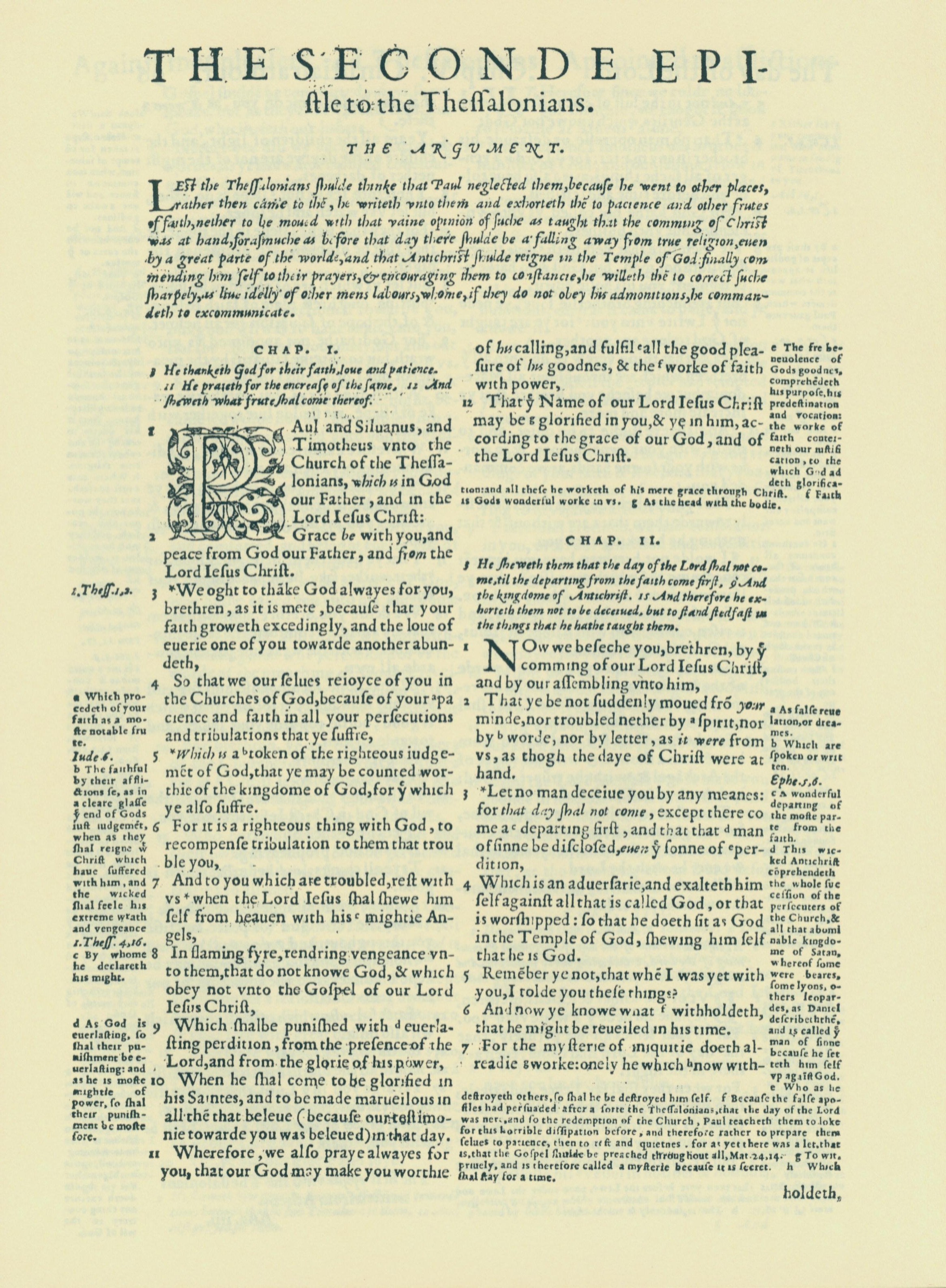 1560年THE BIBLE AND HOLY SCRIPTURES 帖撒羅尼迦後書 1 章 1 節到 2 章 7 節