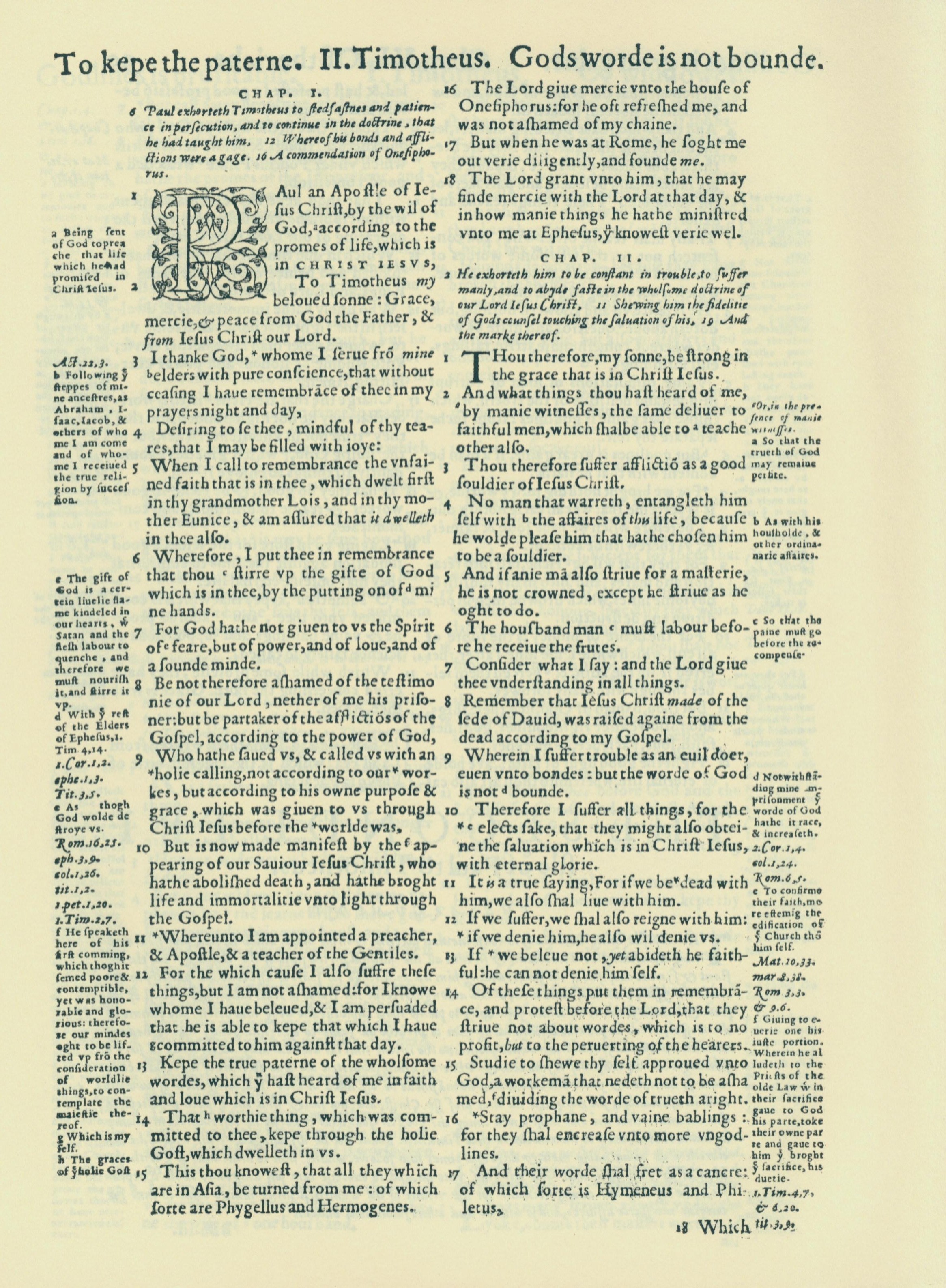 1560年THE BIBLE AND HOLY SCRIPTURES 提摩太後書 1 章 1 節到 2 章 17 節