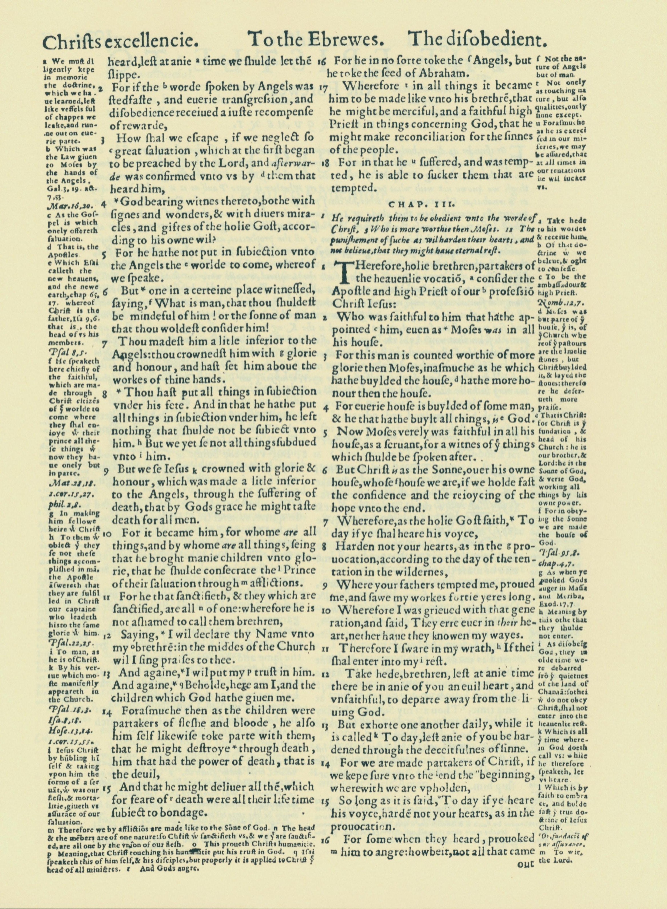 1560年THE BIBLE AND HOLY SCRIPTURES 希伯來書 2 章 2 節到 3 章 16 節