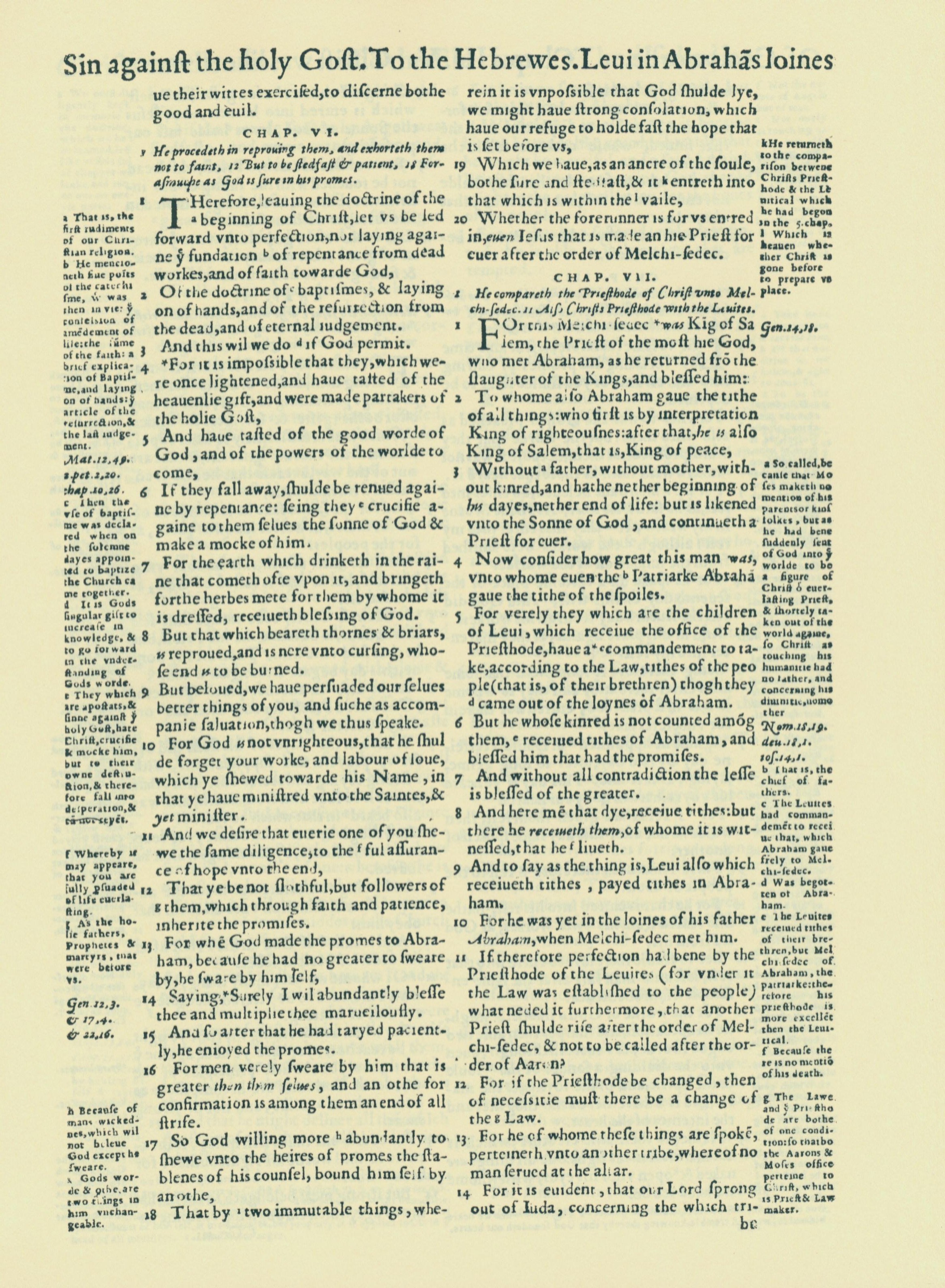 1560年THE BIBLE AND HOLY SCRIPTURES 希伯來書 6 章 1 節到 7 章 14 節
