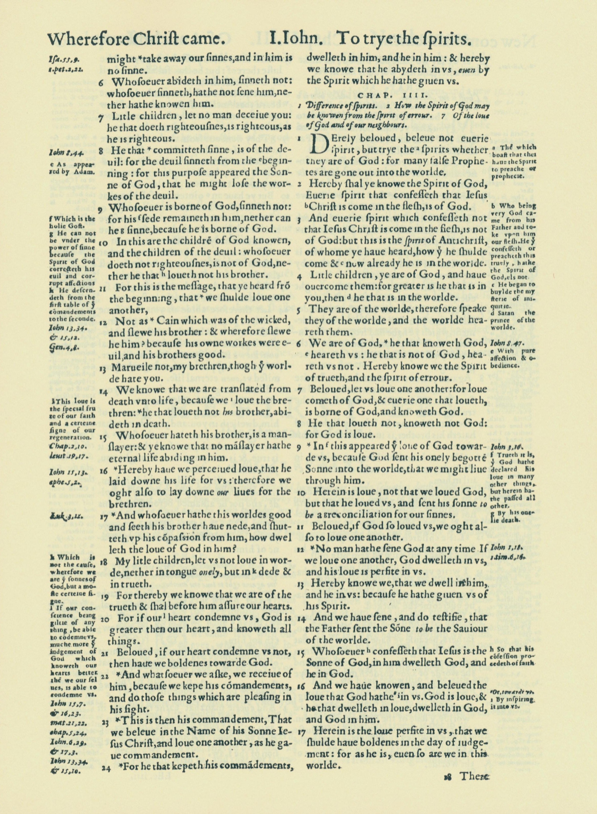 1560年THE BIBLE AND HOLY SCRIPTURES 約翰一書 3 章 6 節到 4 章 17 節