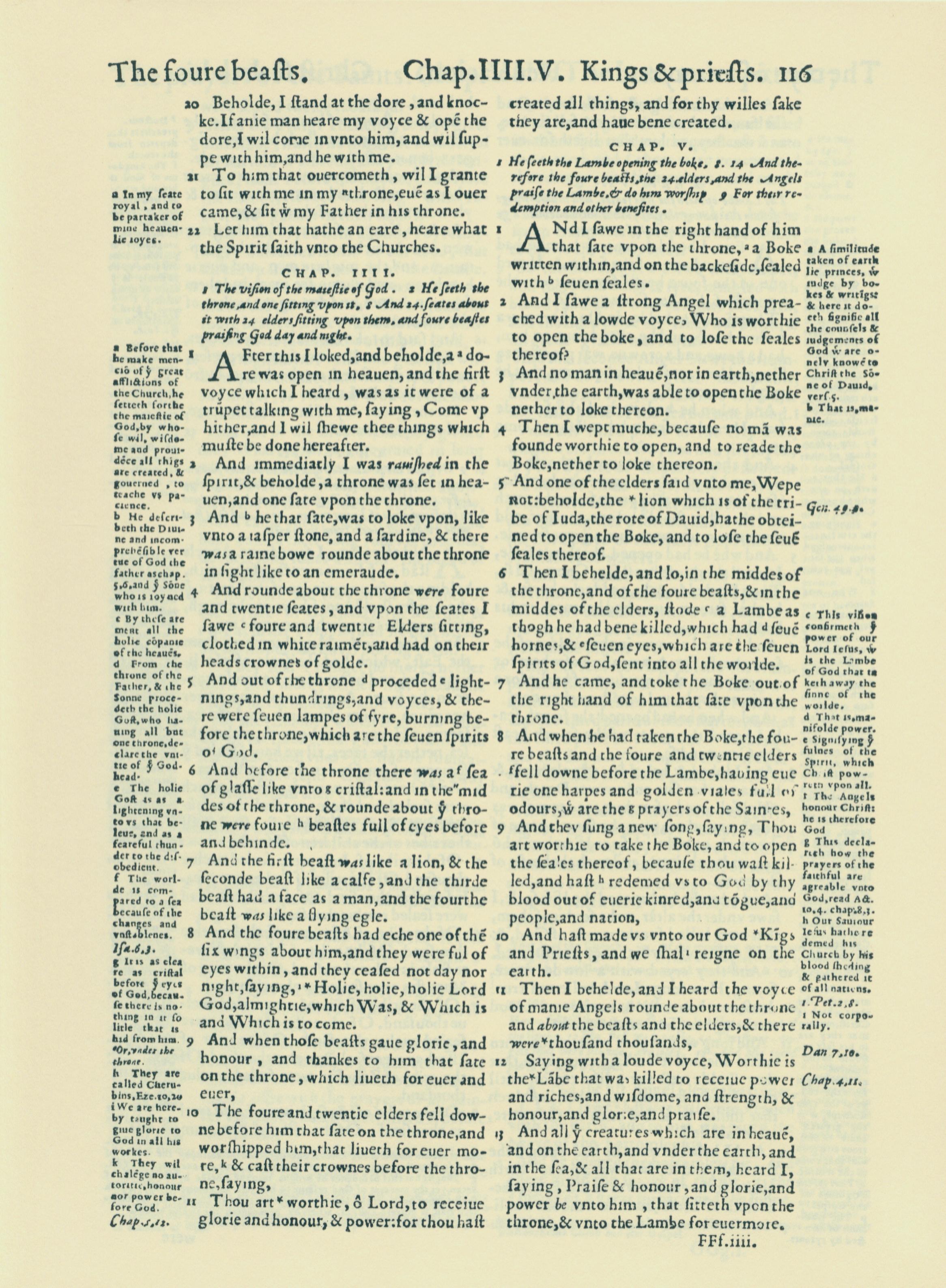 1560年THE BIBLE AND HOLY SCRIPTURES 啟示錄 3 章 20 節到 5 章 13 節