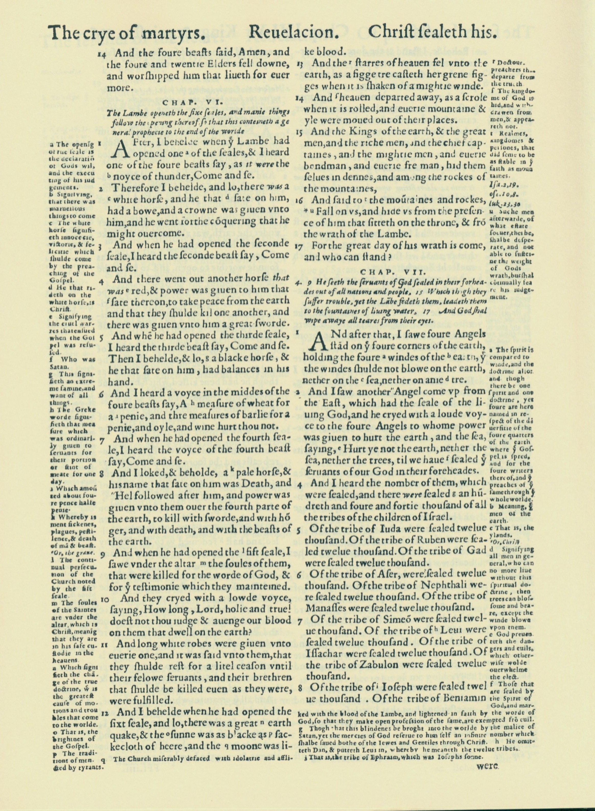 1560年THE BIBLE AND HOLY SCRIPTURES 啟示錄 5 章 14 節到 7 章 8 節