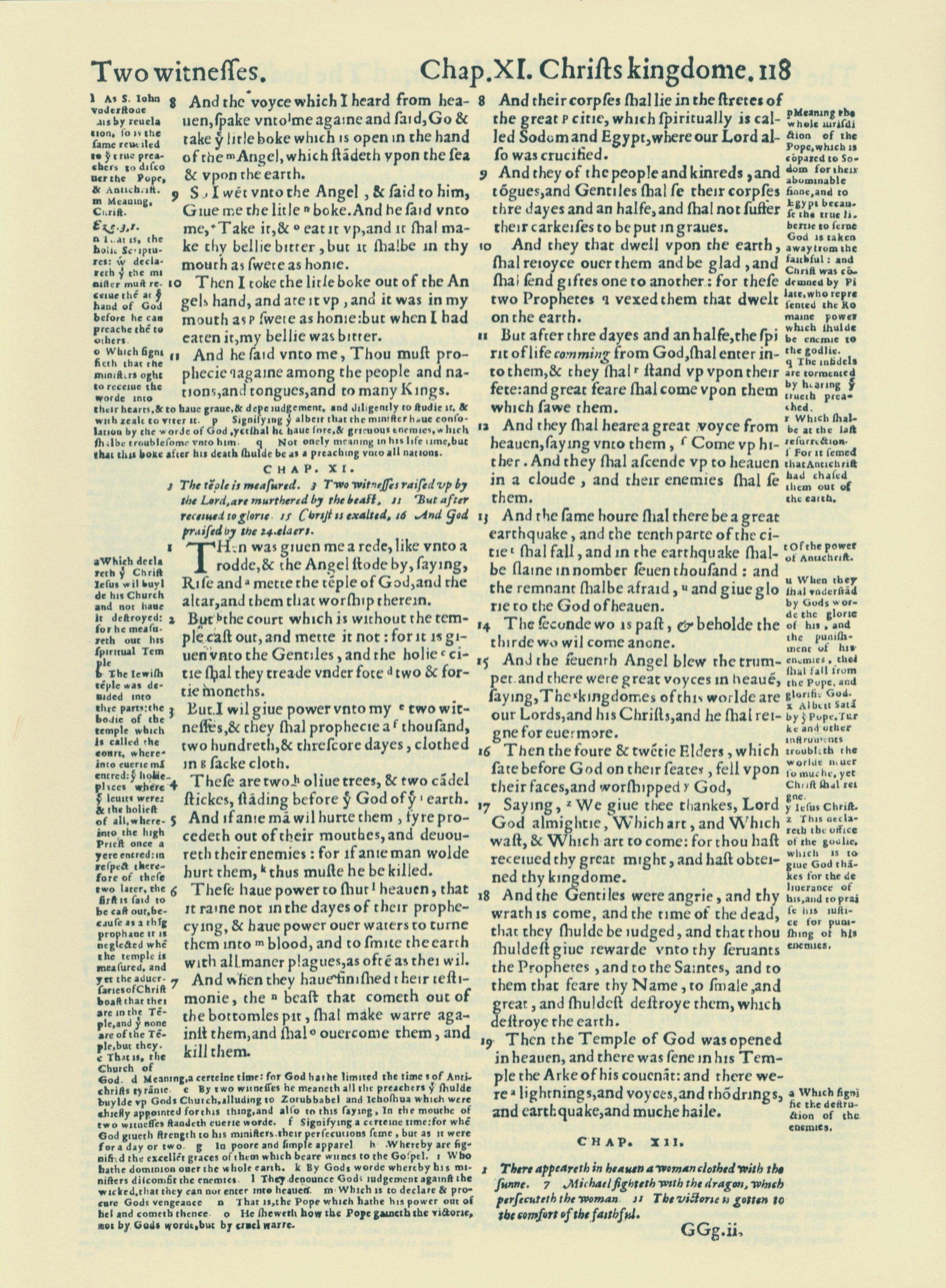 1560年THE BIBLE AND HOLY SCRIPTURES 啟示錄 10 章 8 節到 11 章 19 節