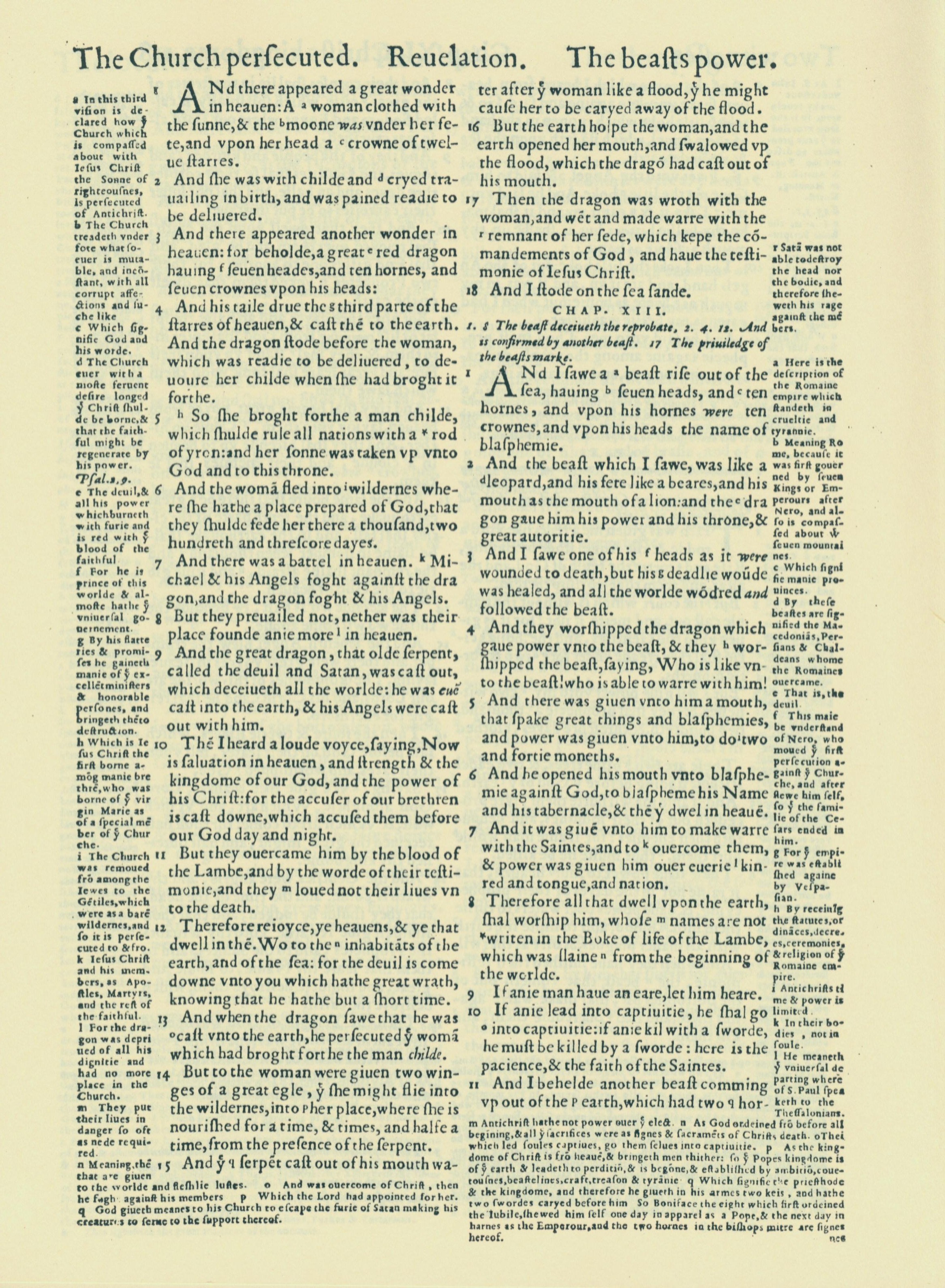 1560年THE BIBLE AND HOLY SCRIPTURES 啟示錄 12 章 1 節到 13 章 11 節