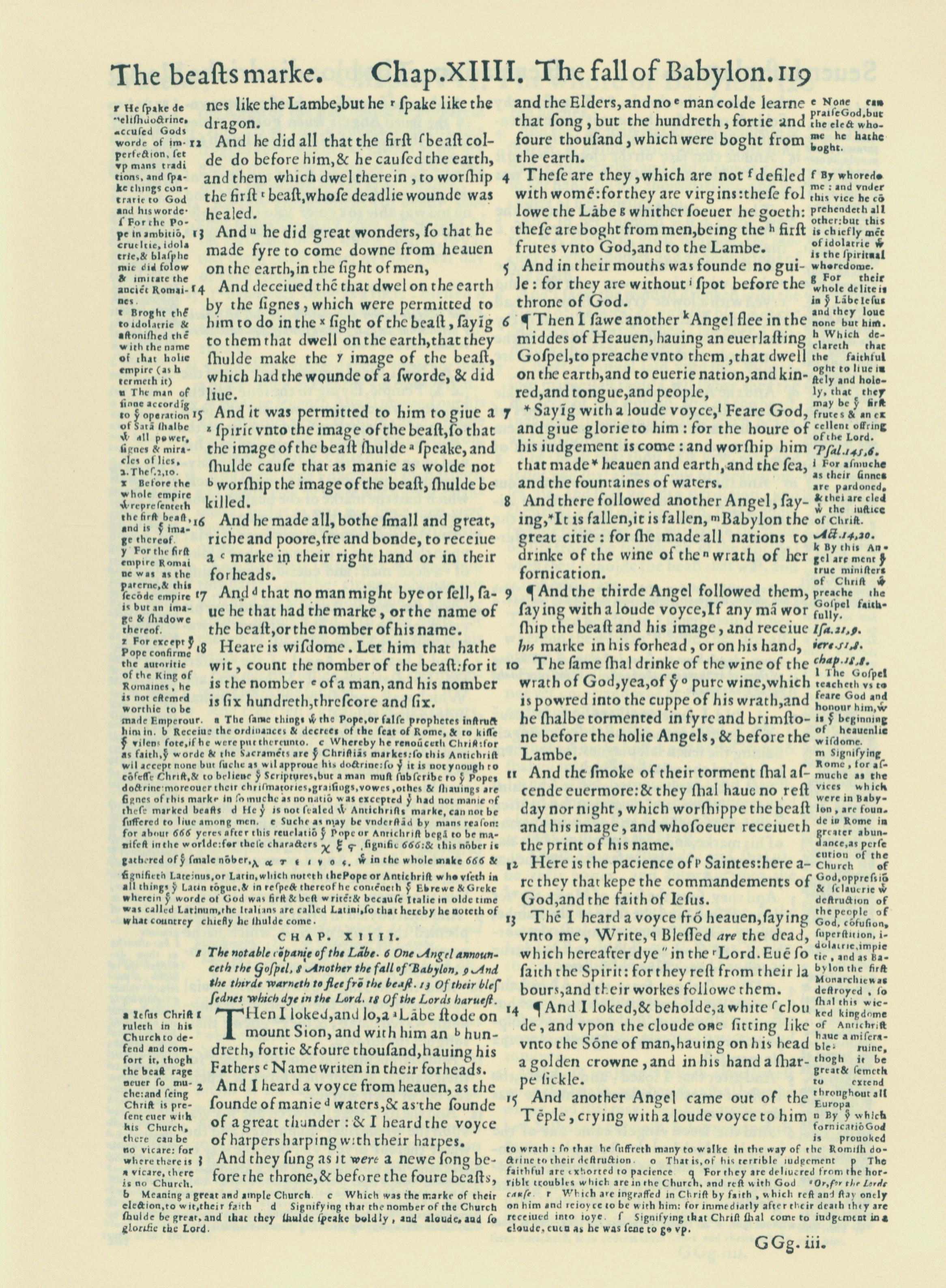 1560年THE BIBLE AND HOLY SCRIPTURES 啟示錄 13 章 12 節到 14 章 15 節