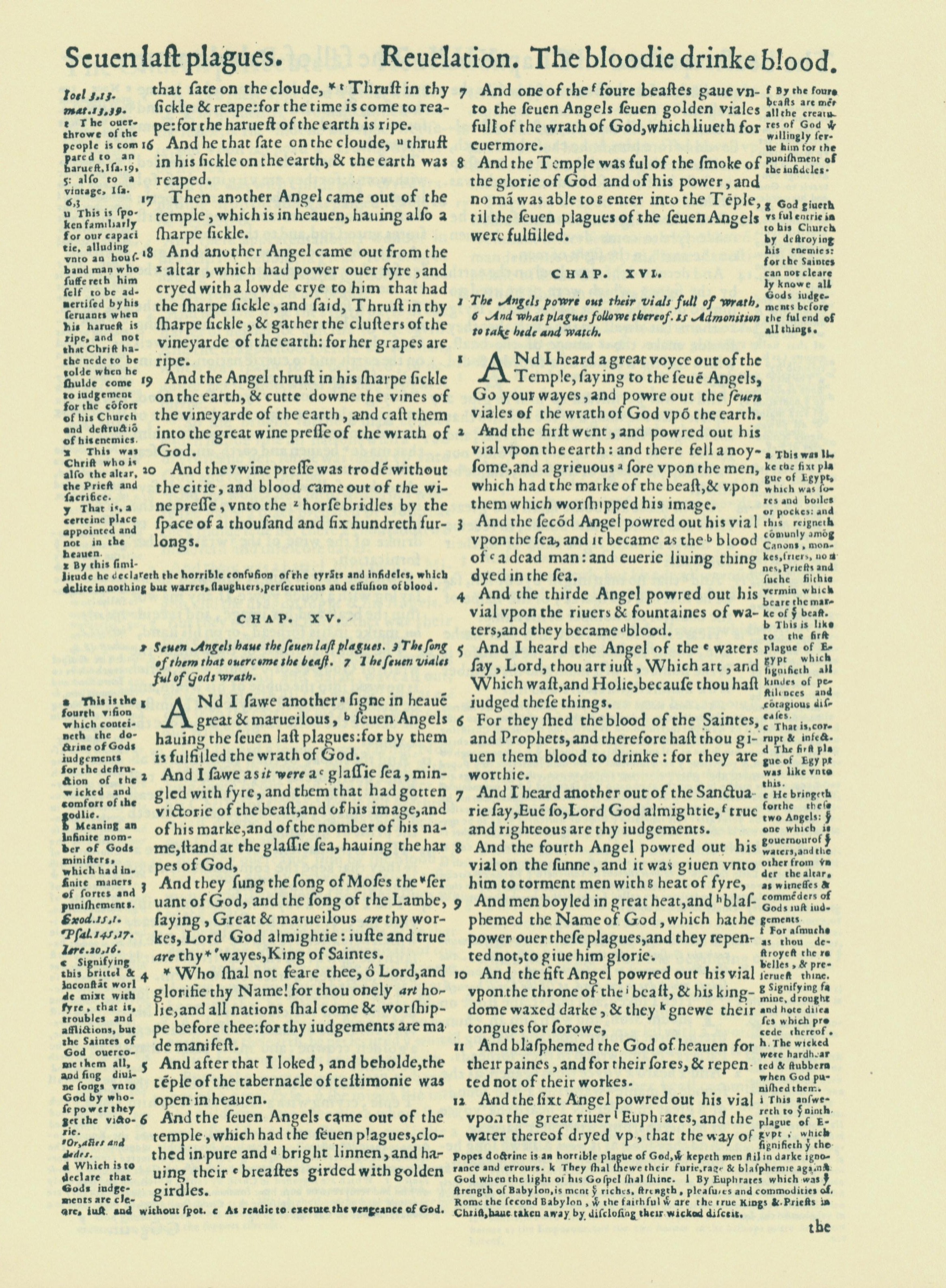 1560年THE BIBLE AND HOLY SCRIPTURES 啟示錄 14 章 16 節到 16 章 12 節