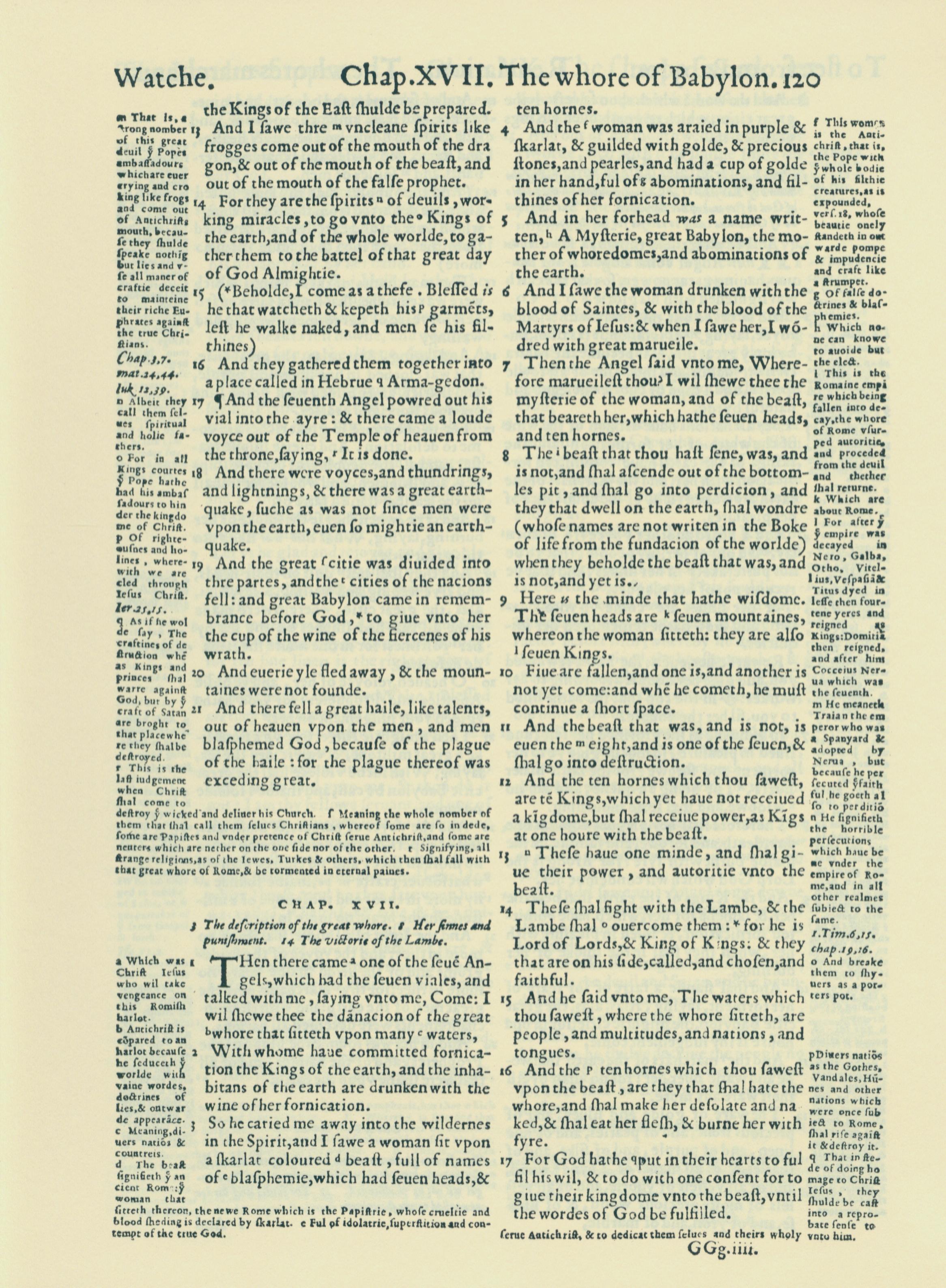 1560年THE BIBLE AND HOLY SCRIPTURES 啟示錄 16 章 13 節到 17 章 17 節