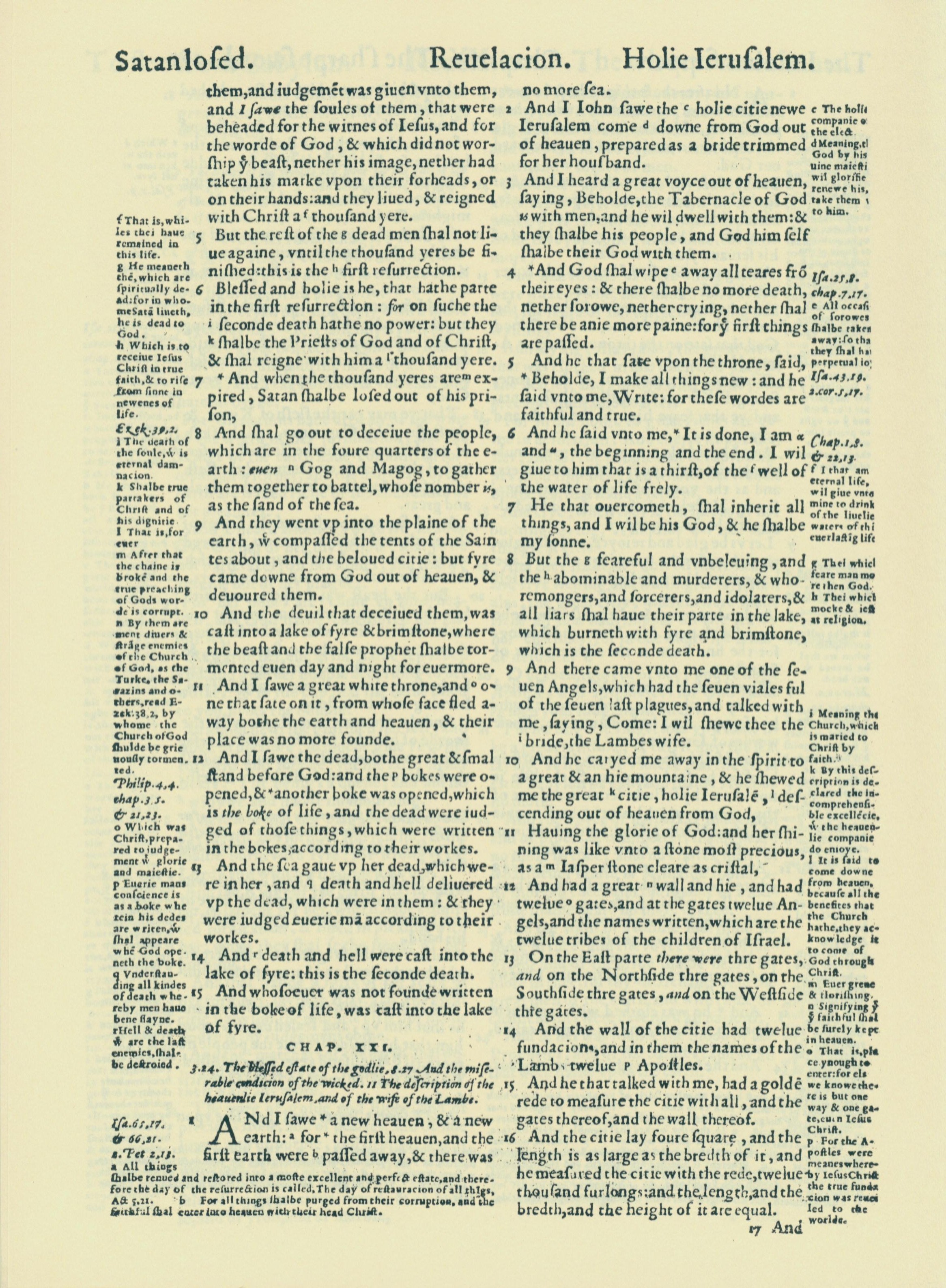 1560年THE BIBLE AND HOLY SCRIPTURES 啟示錄 20 章 5 節到 21 章 16 節