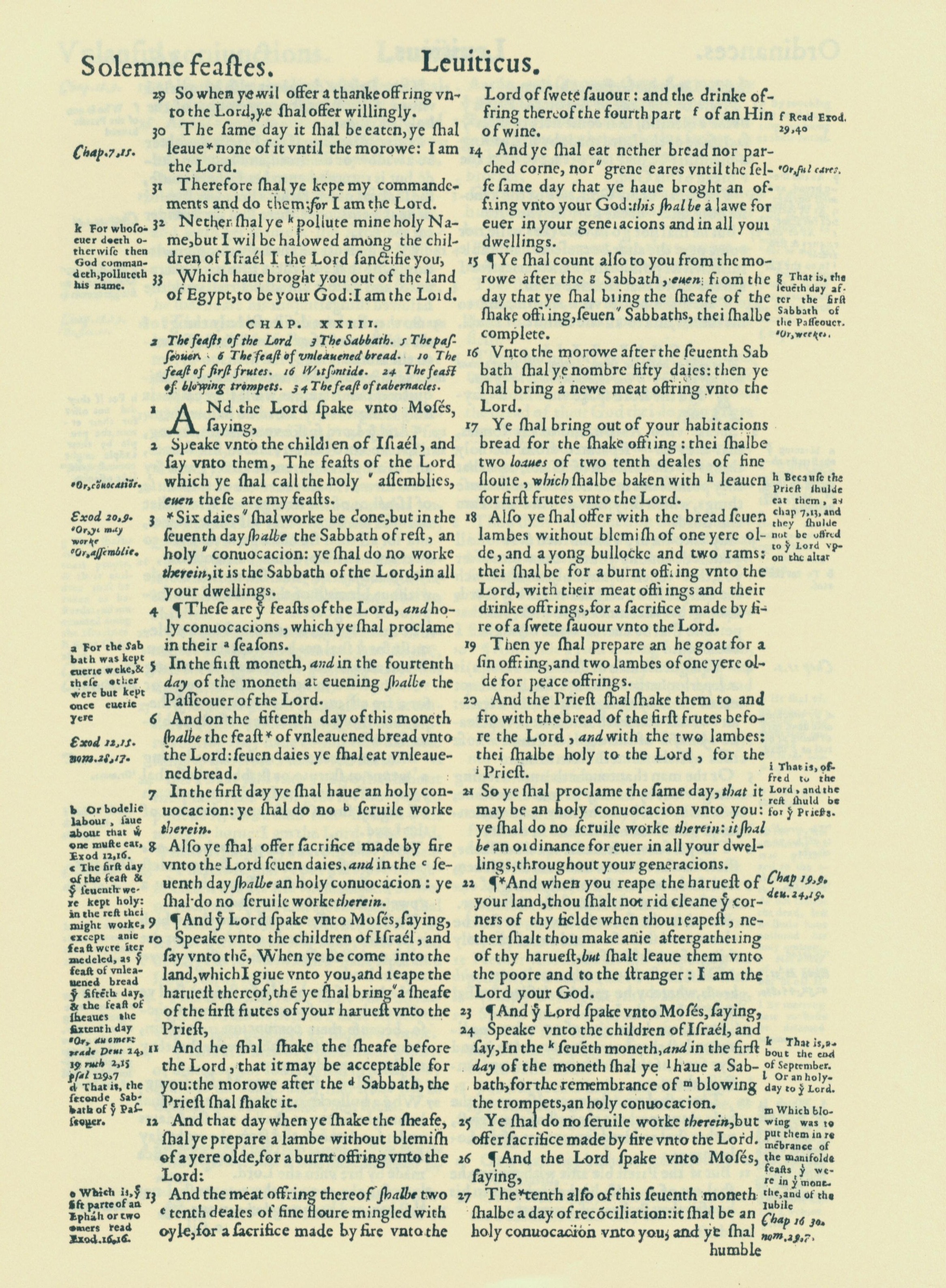 1560年THE BIBLE AND HOLY SCRIPTURES 利未記 22 章 29 節到 23 章 27 節
