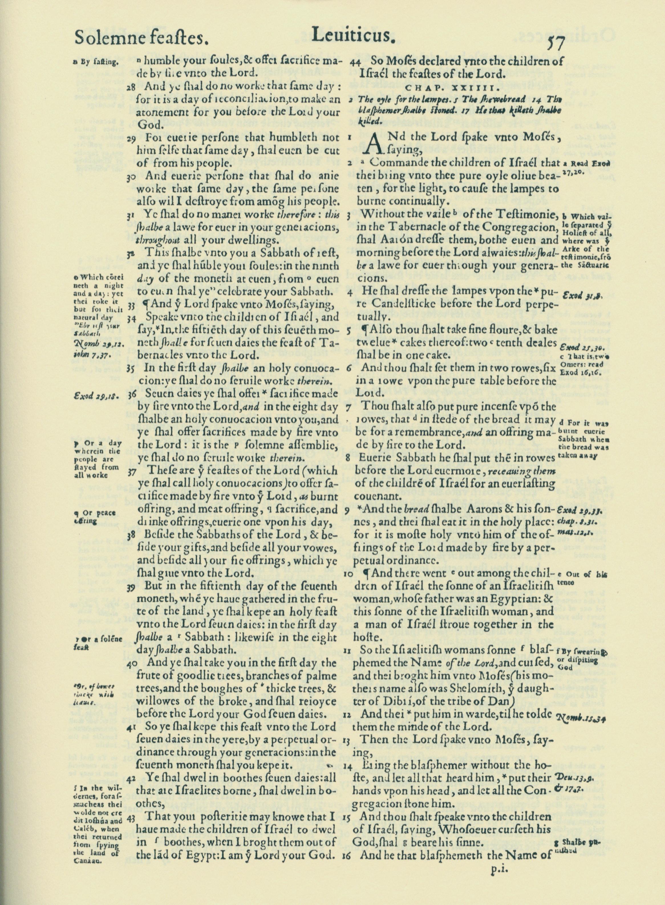 1560年THE BIBLE AND HOLY SCRIPTURES 利未記 23 章 28 節到 24 章 16 節