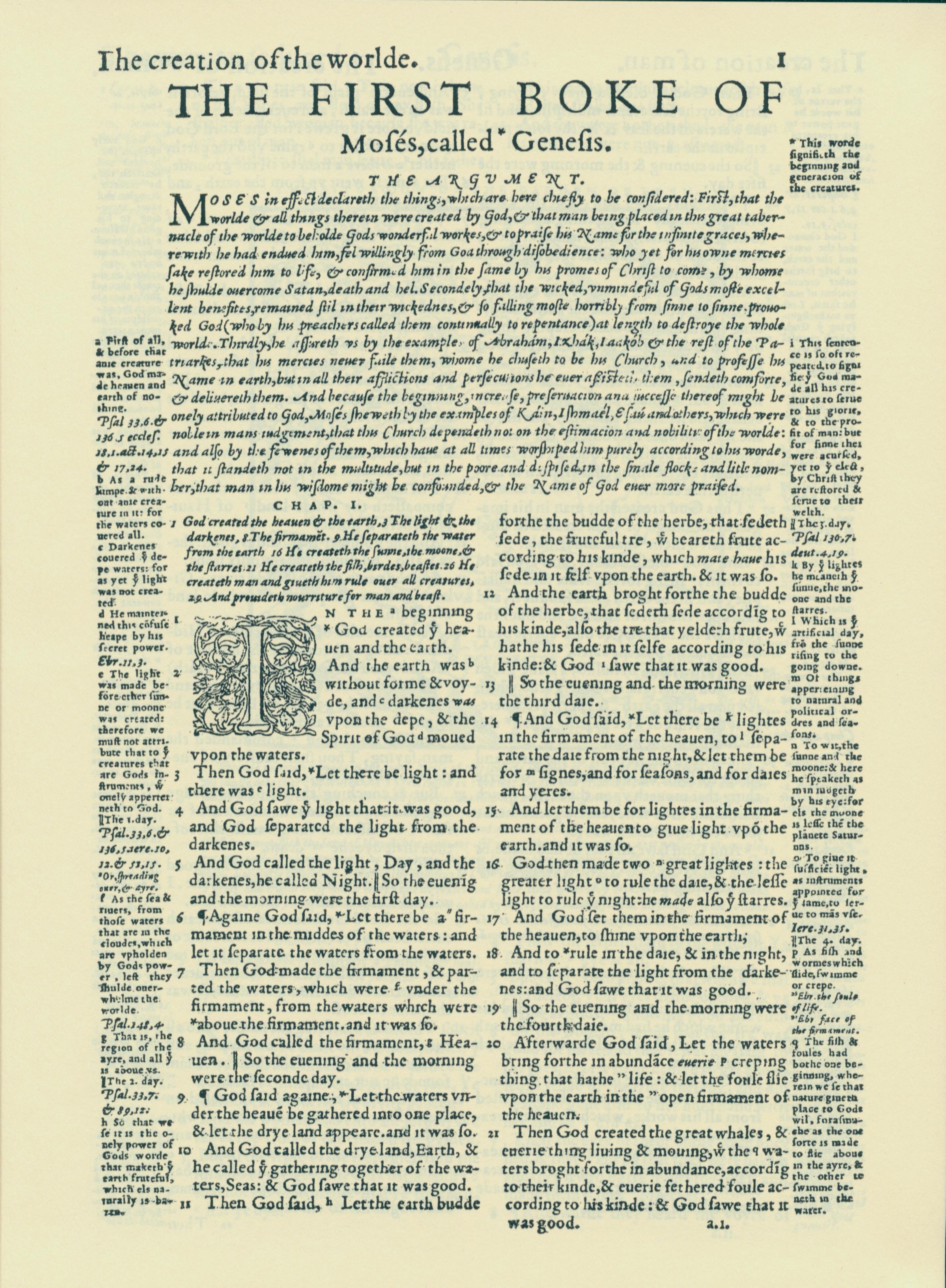 1560年THE BIBLE AND HOLY SCRIPTURES 創世記 1 章 1 節到 1 章 21 節