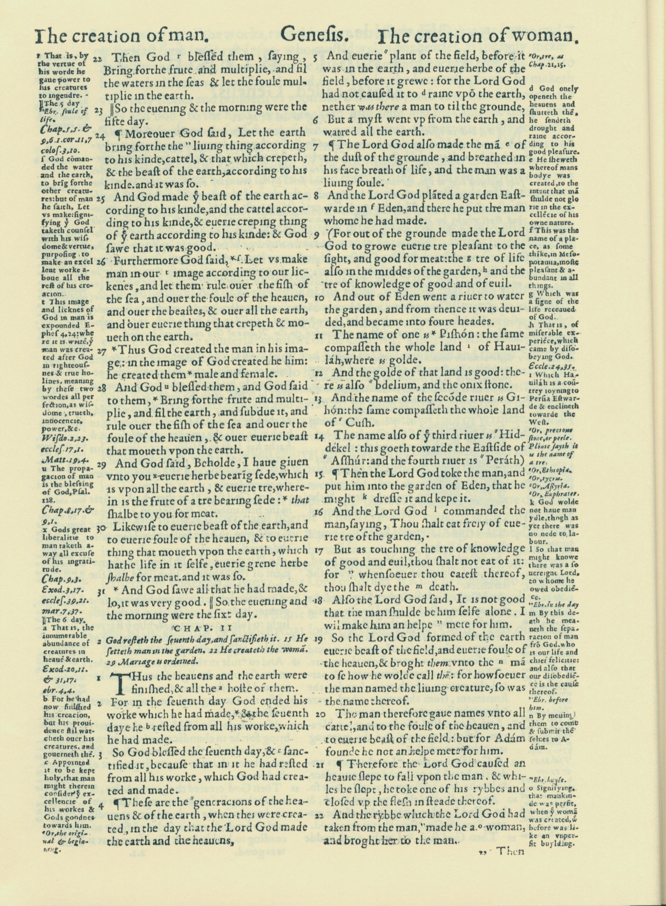 1560年THE BIBLE AND HOLY SCRIPTURES 創世記 1 章 22 節到 2 章 22 節