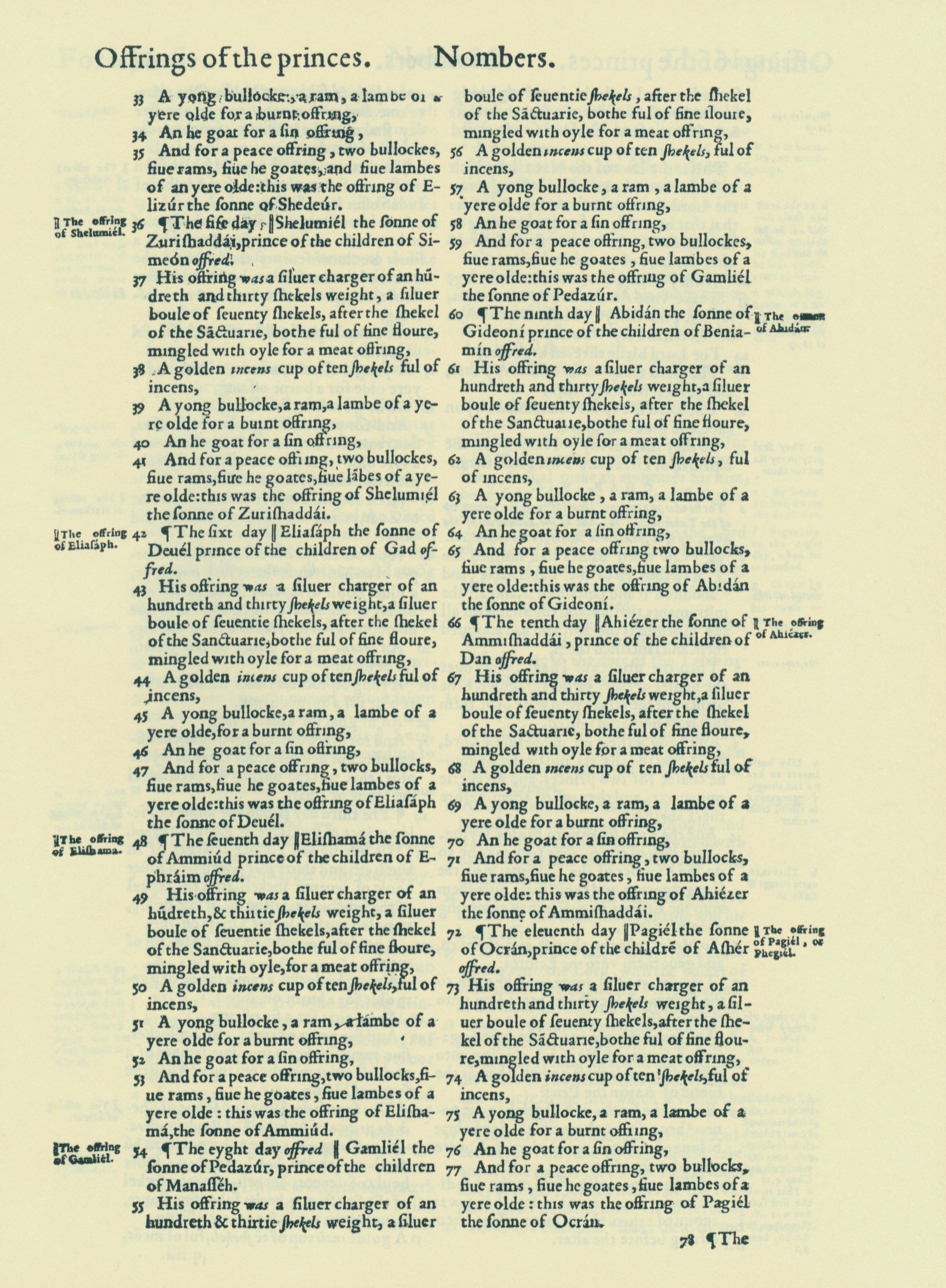 1560年THE BIBLE AND HOLY SCRIPTURES 民數記 7 章 33 節到 7 章 77 節