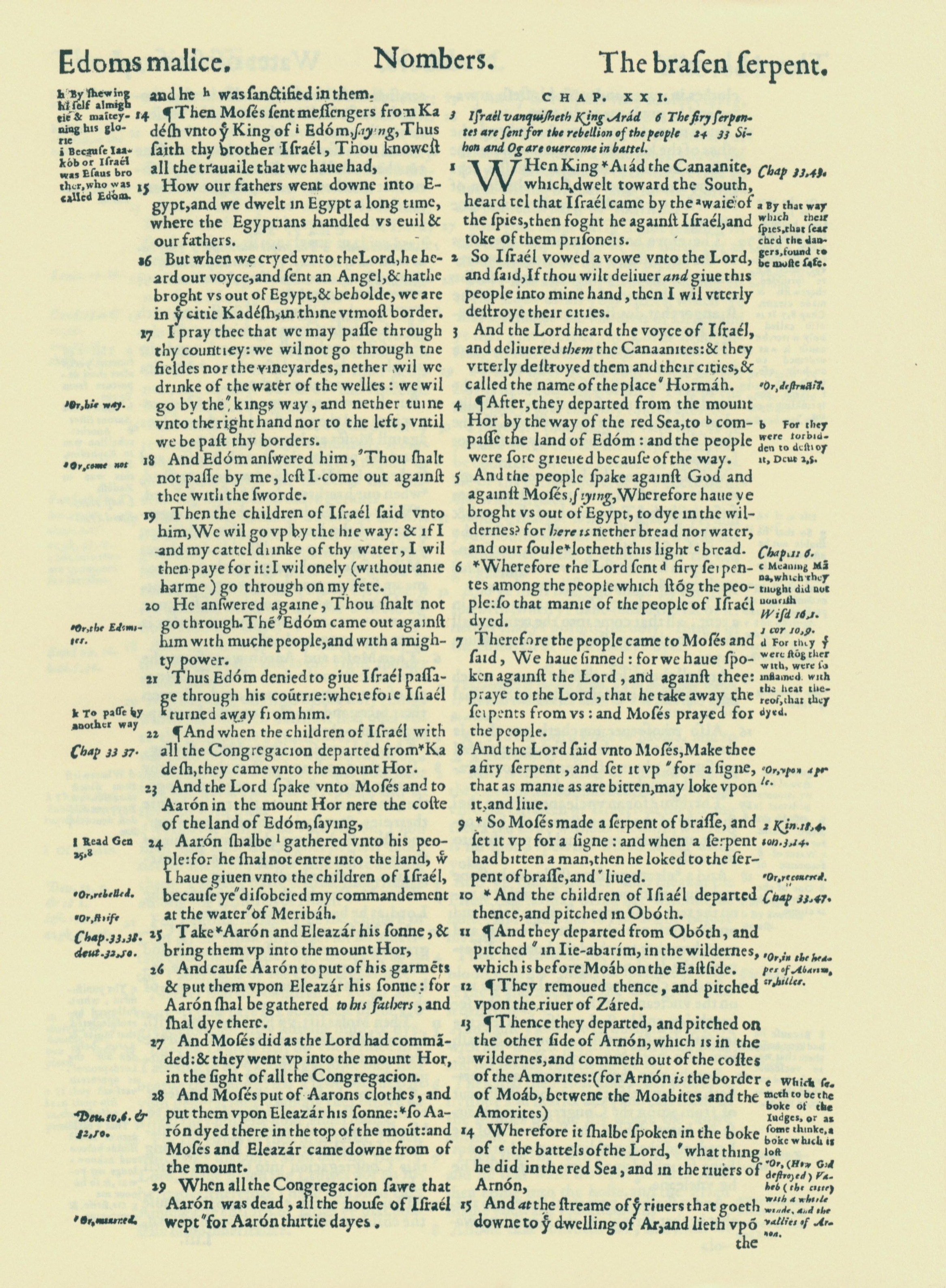 1560年THE BIBLE AND HOLY SCRIPTURES 民數記 20 章 14 節到 21 章 15 節