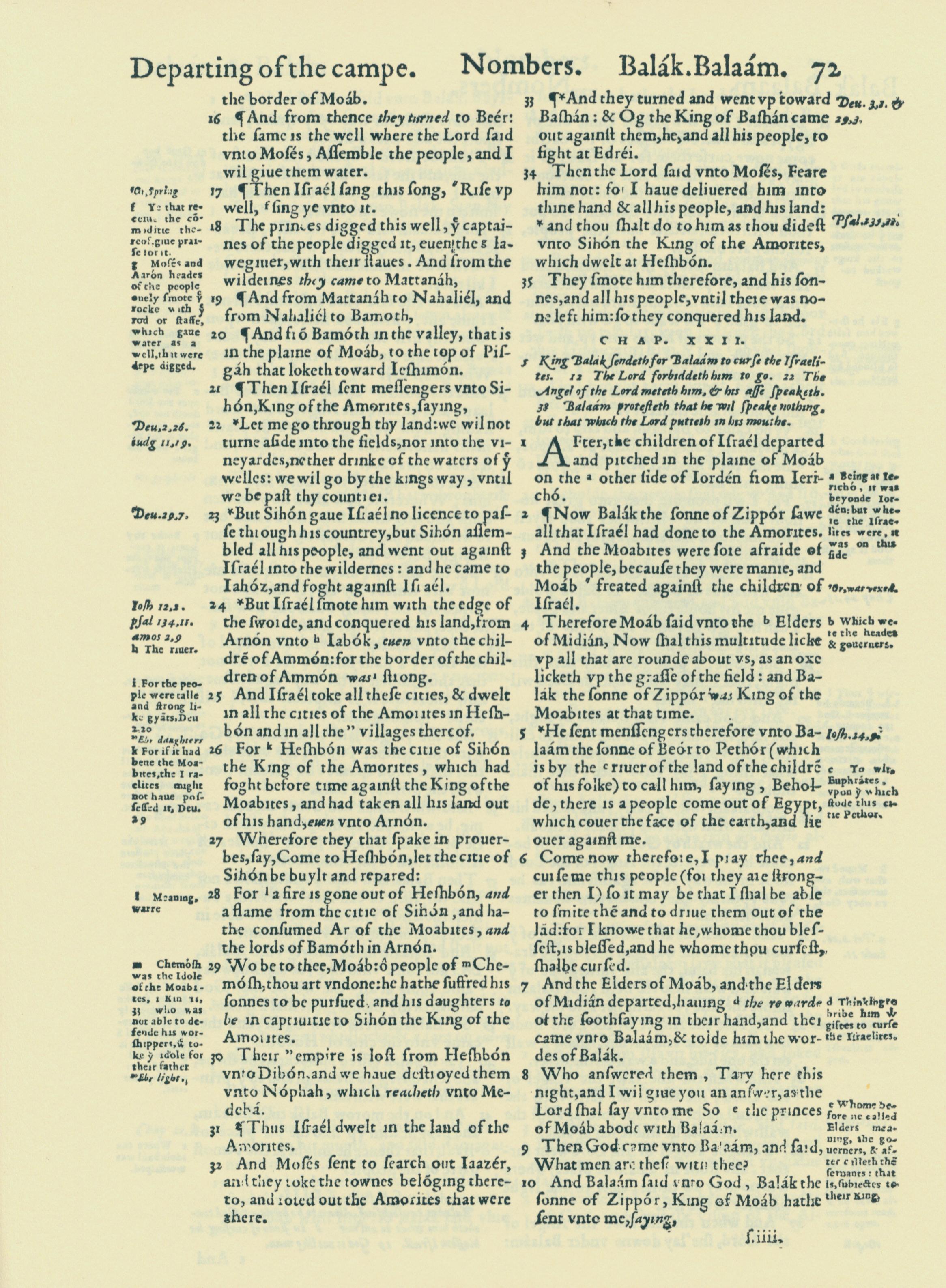 1560年THE BIBLE AND HOLY SCRIPTURES 民數記 21 章 16 節到 22 章 10 節