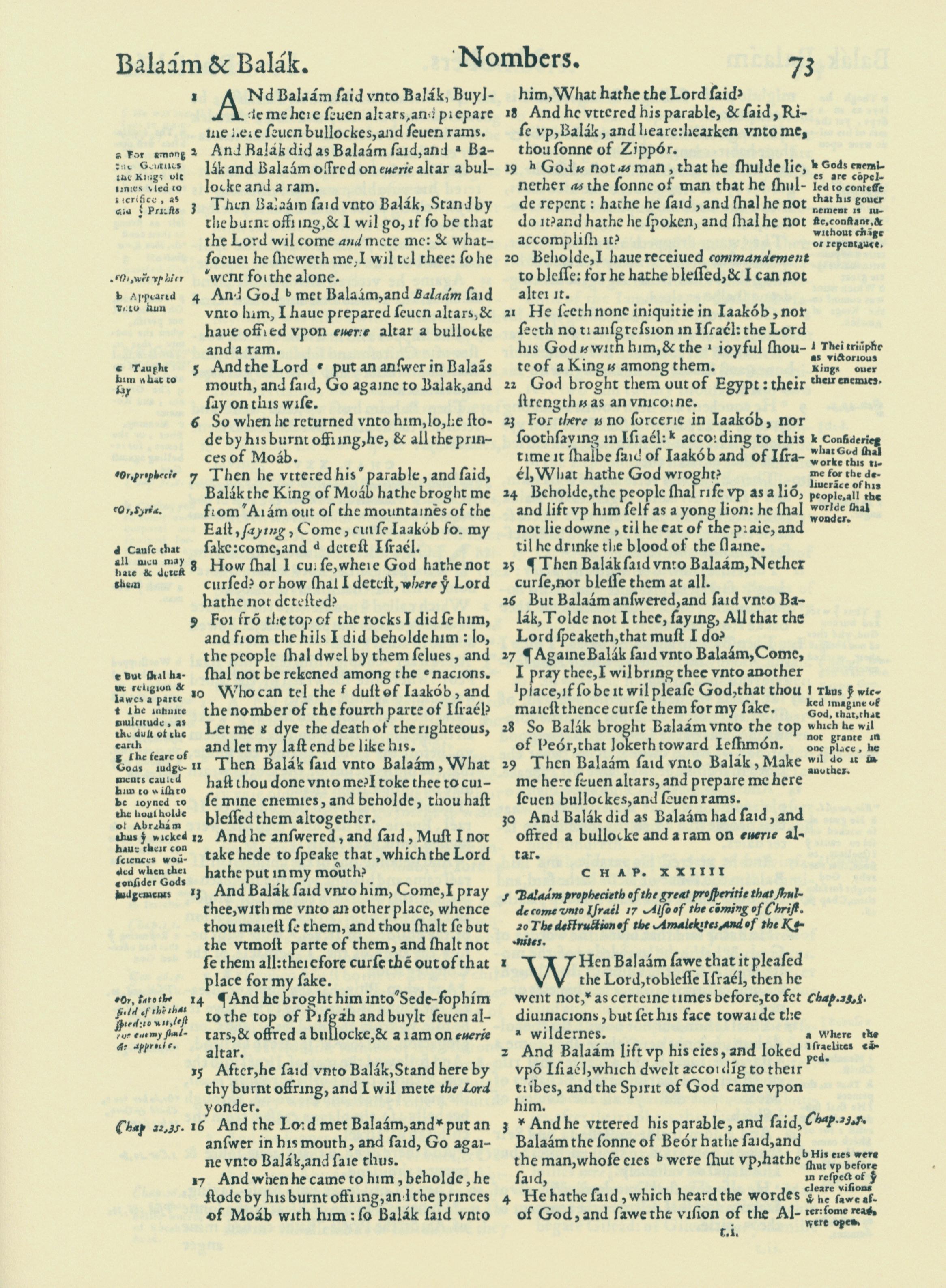 1560年THE BIBLE AND HOLY SCRIPTURES 民數記 23 章 1 節到 24 章 4 節