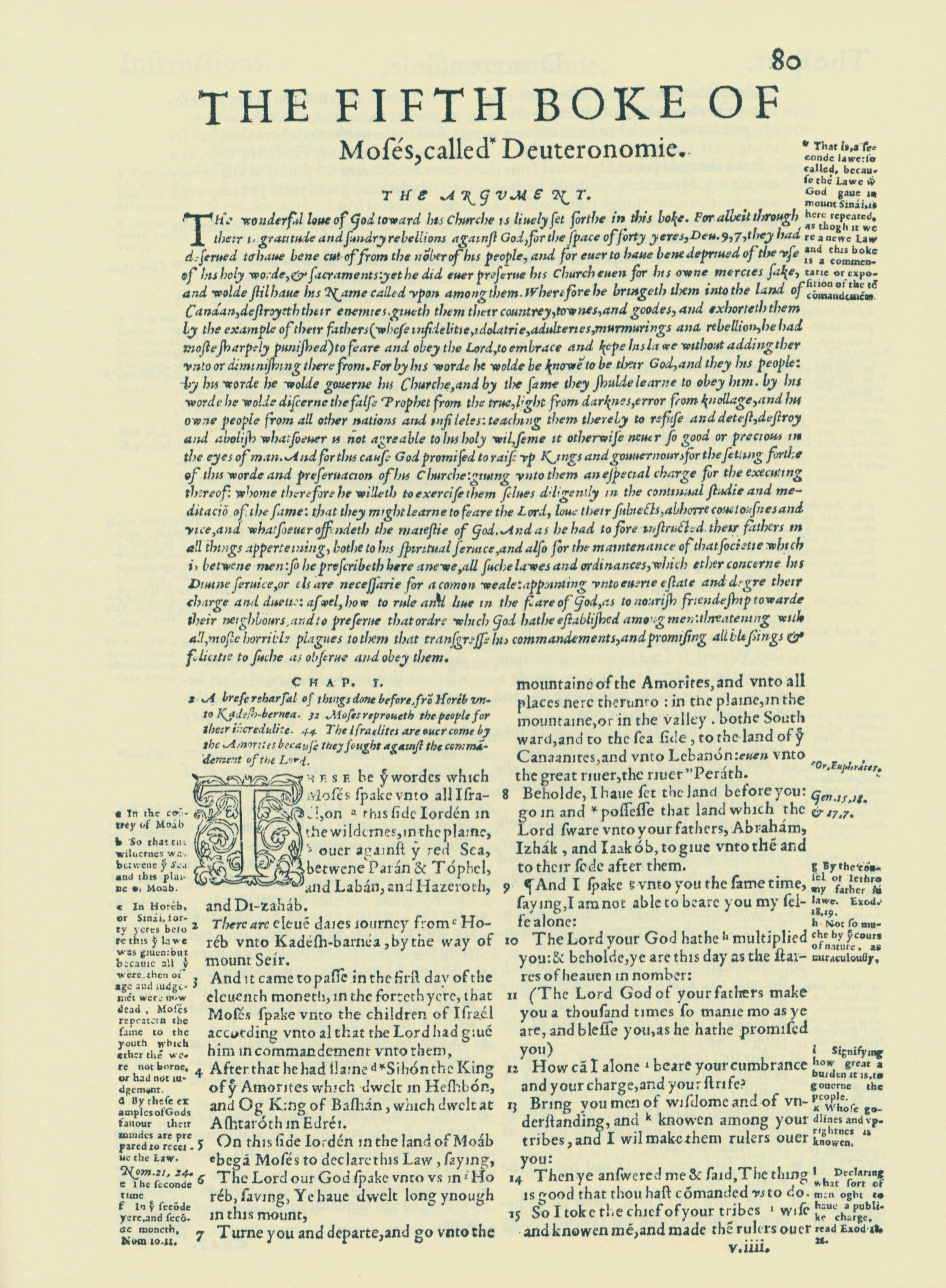 1560年THE BIBLE AND HOLY SCRIPTURES 申命記 1 章 1 節到 1 章 15 節
