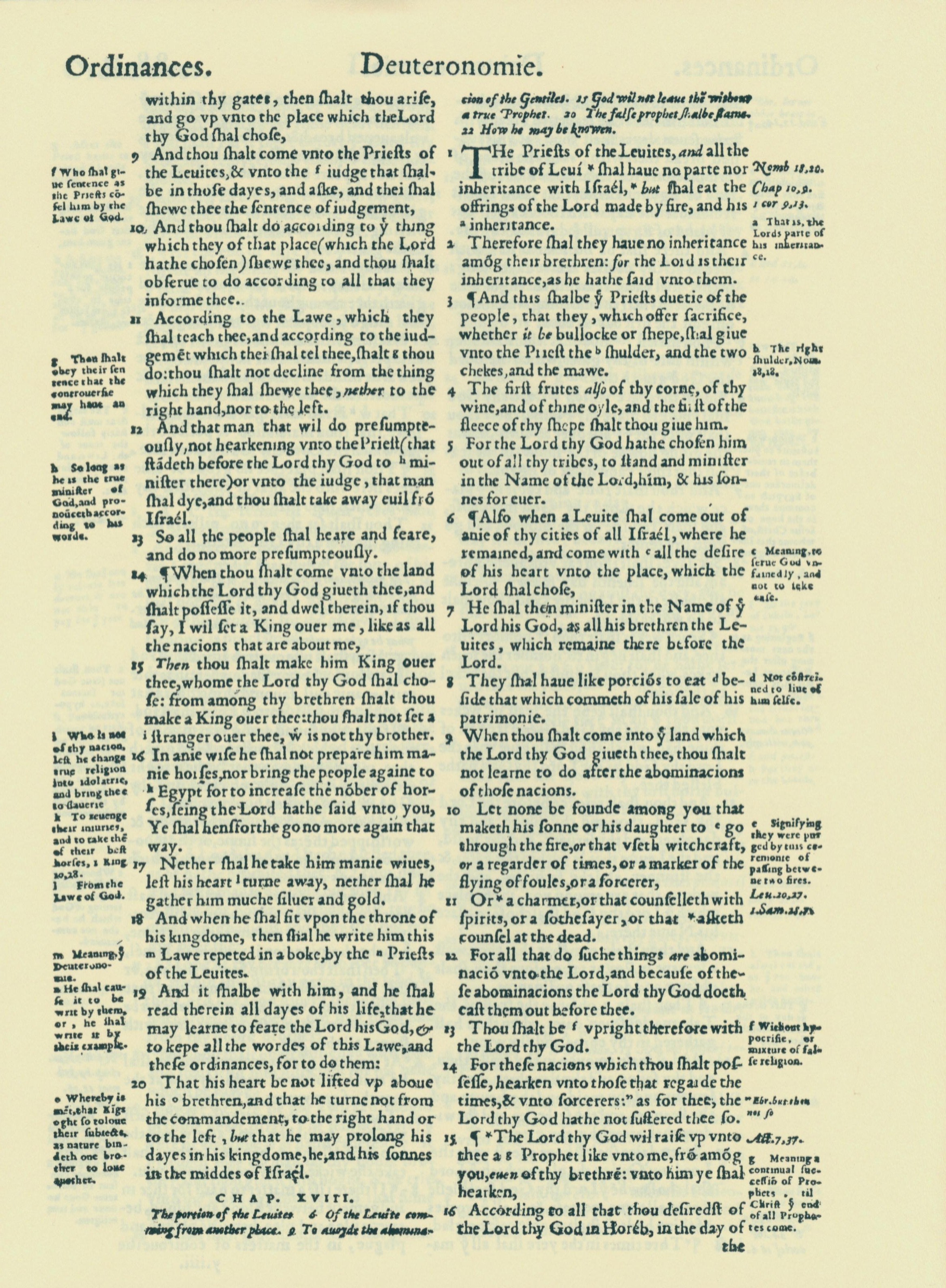 1560年THE BIBLE AND HOLY SCRIPTURES 申命記 17 章 9 節到 18 章 16 節