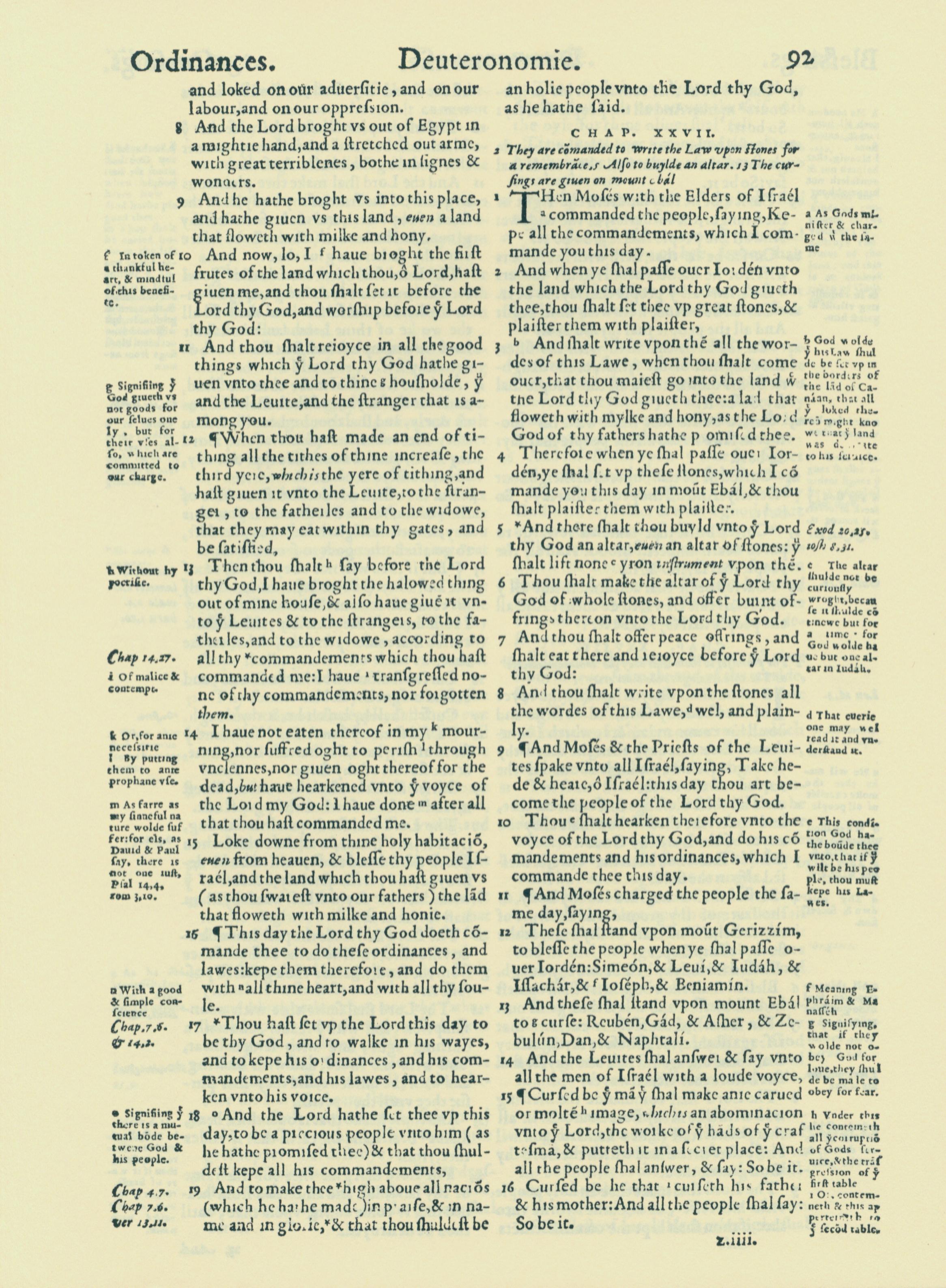 1560年THE BIBLE AND HOLY SCRIPTURES 申命記 26 章 8 節到 27 章 16 節