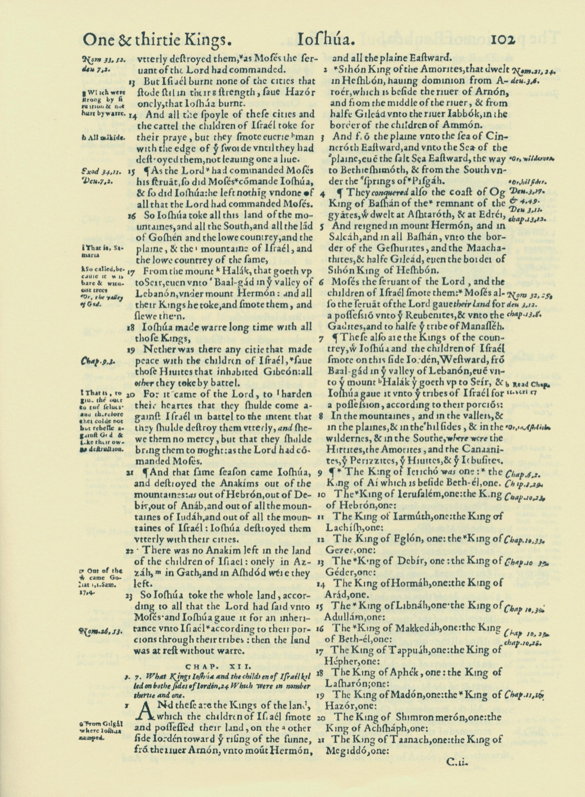 1560年THE BIBLE AND HOLY SCRIPTURES 約書亞記 11 章 13 節到 12 章 21 節