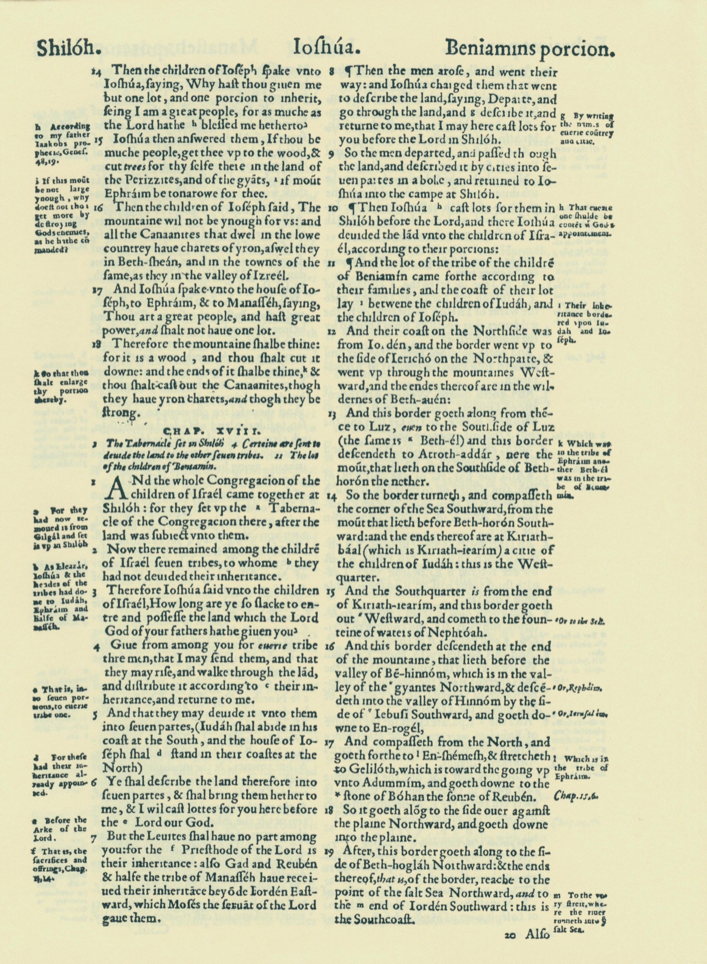 1560年THE BIBLE AND HOLY SCRIPTURES 約書亞記 17 章 14 節到 18 章 19 節