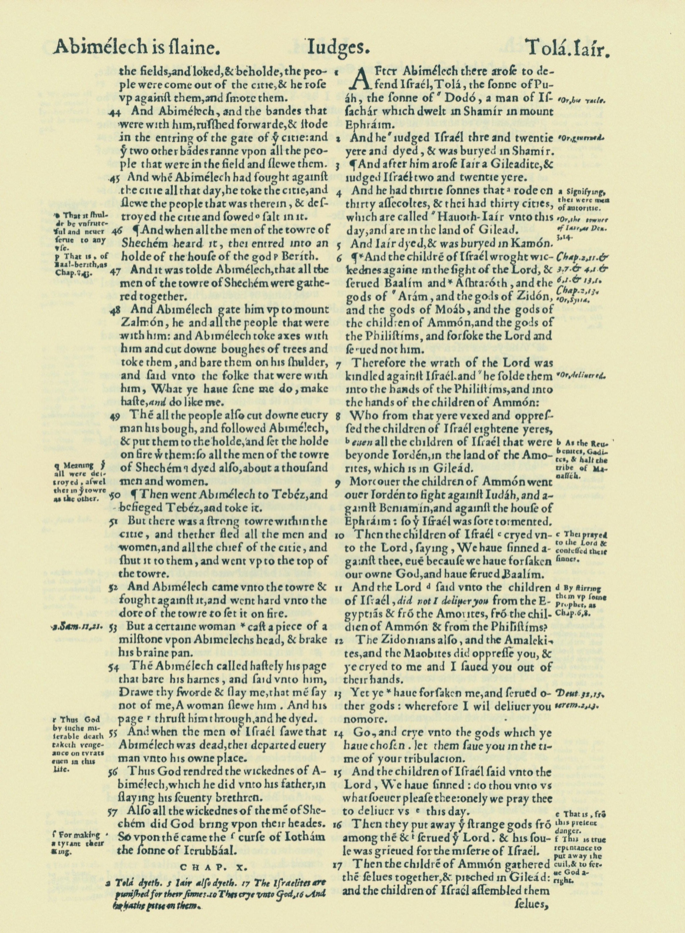 1560年THE BIBLE AND HOLY SCRIPTURES 士師記 9 章 44 節到 10 章 17 節