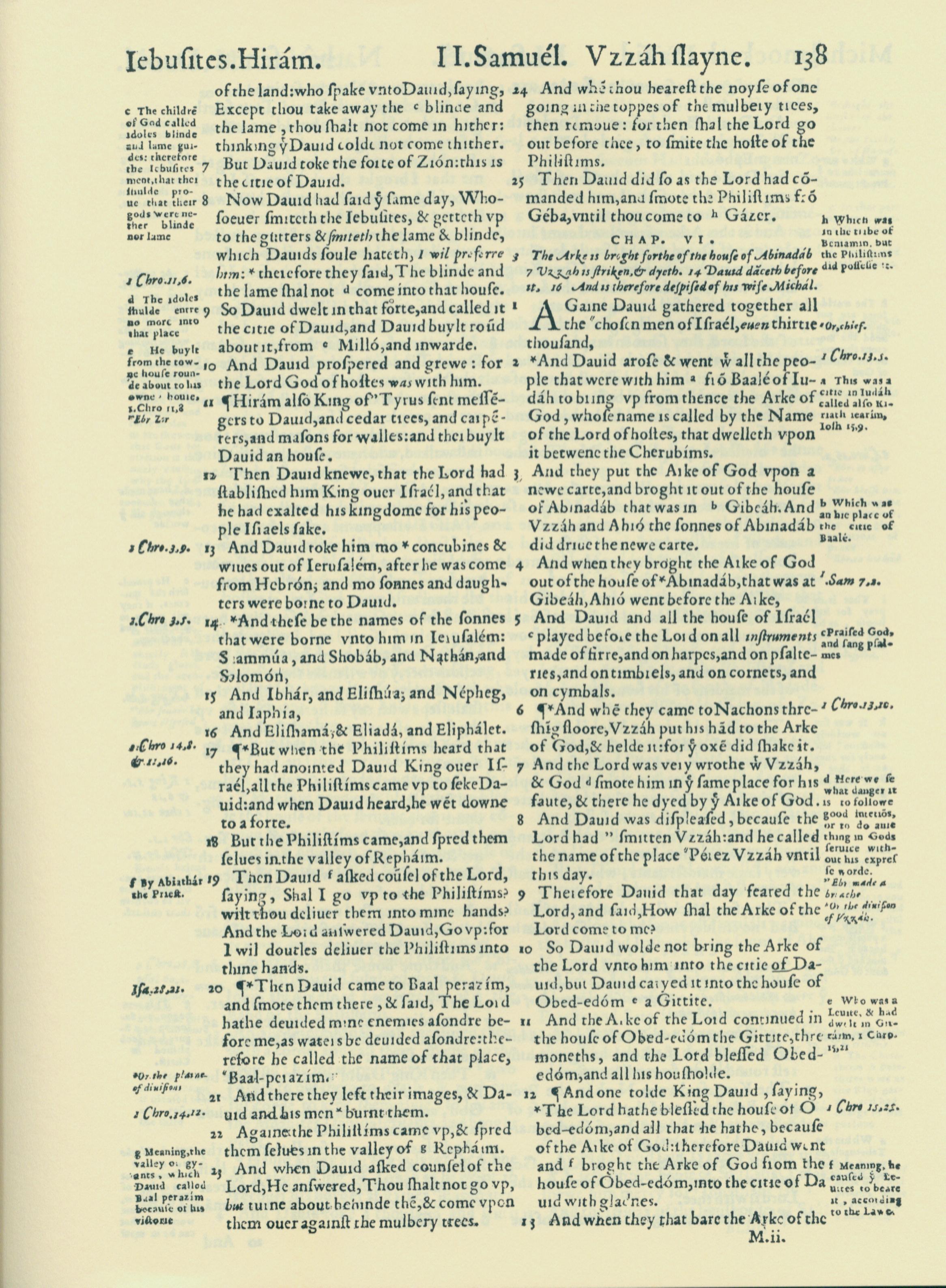 1560年THE BIBLE AND HOLY SCRIPTURES 撒母耳記下 5 章 7 節到 6 章 13 節