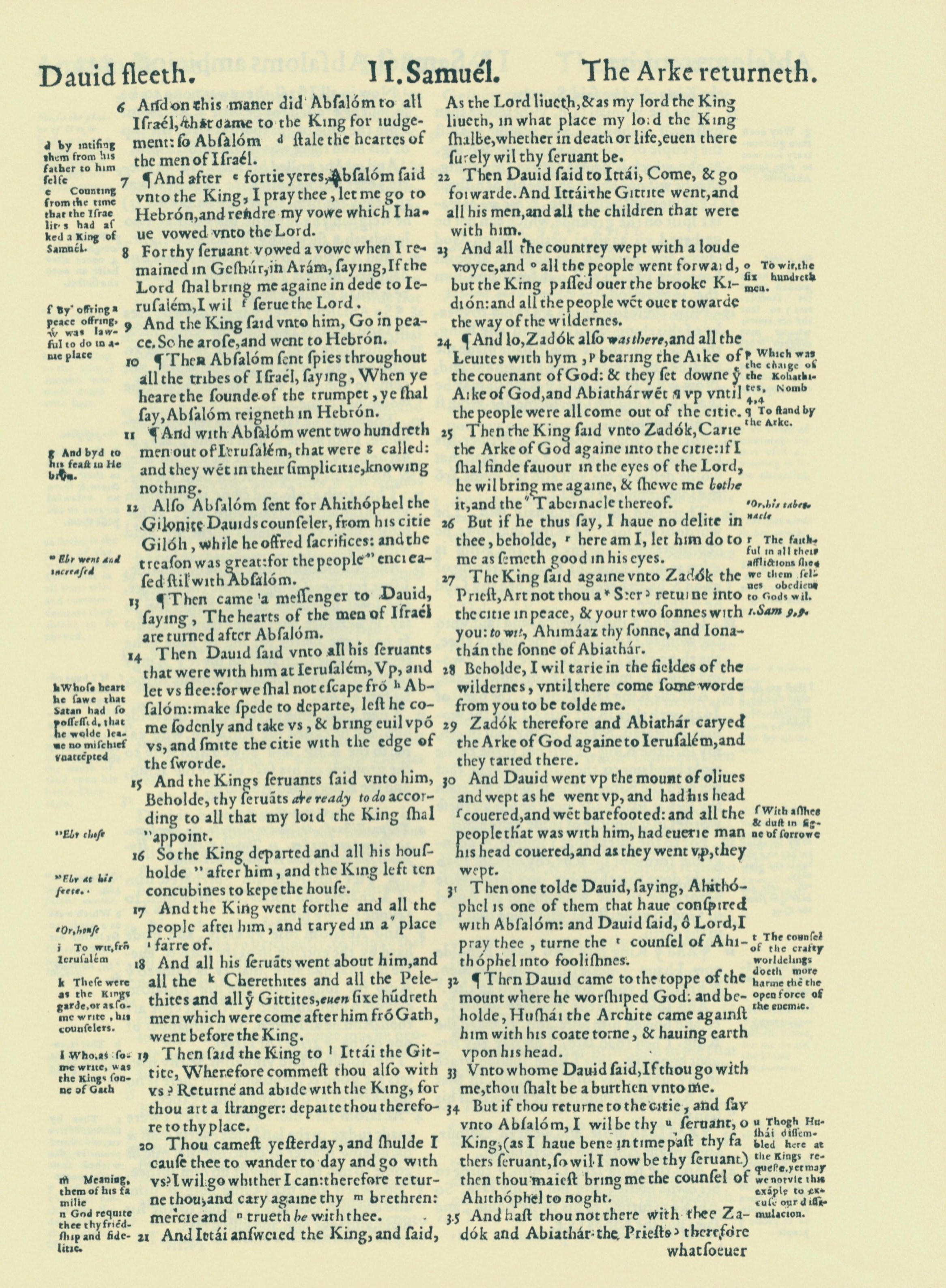 1560年THE BIBLE AND HOLY SCRIPTURES 撒母耳記下 15 章 6 節到 15 章 35 節
