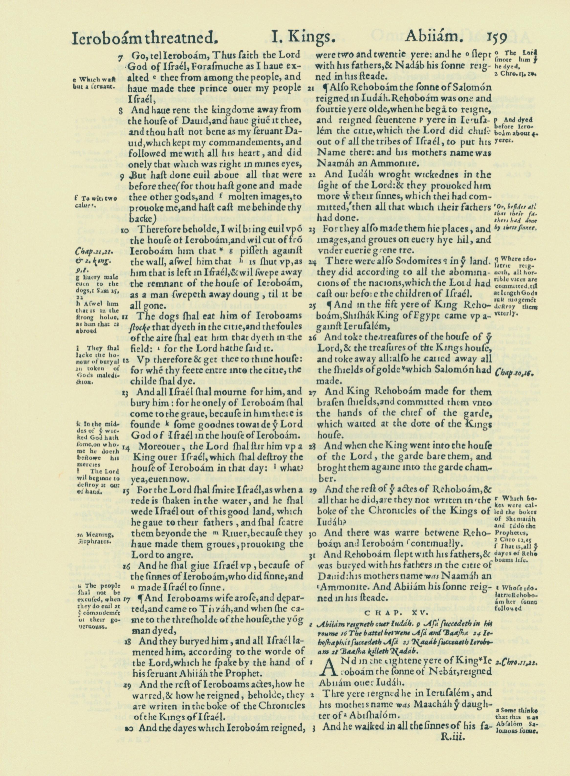 1560年THE BIBLE AND HOLY SCRIPTURES 列王紀上 14 章 7 節到 15 章 3 節