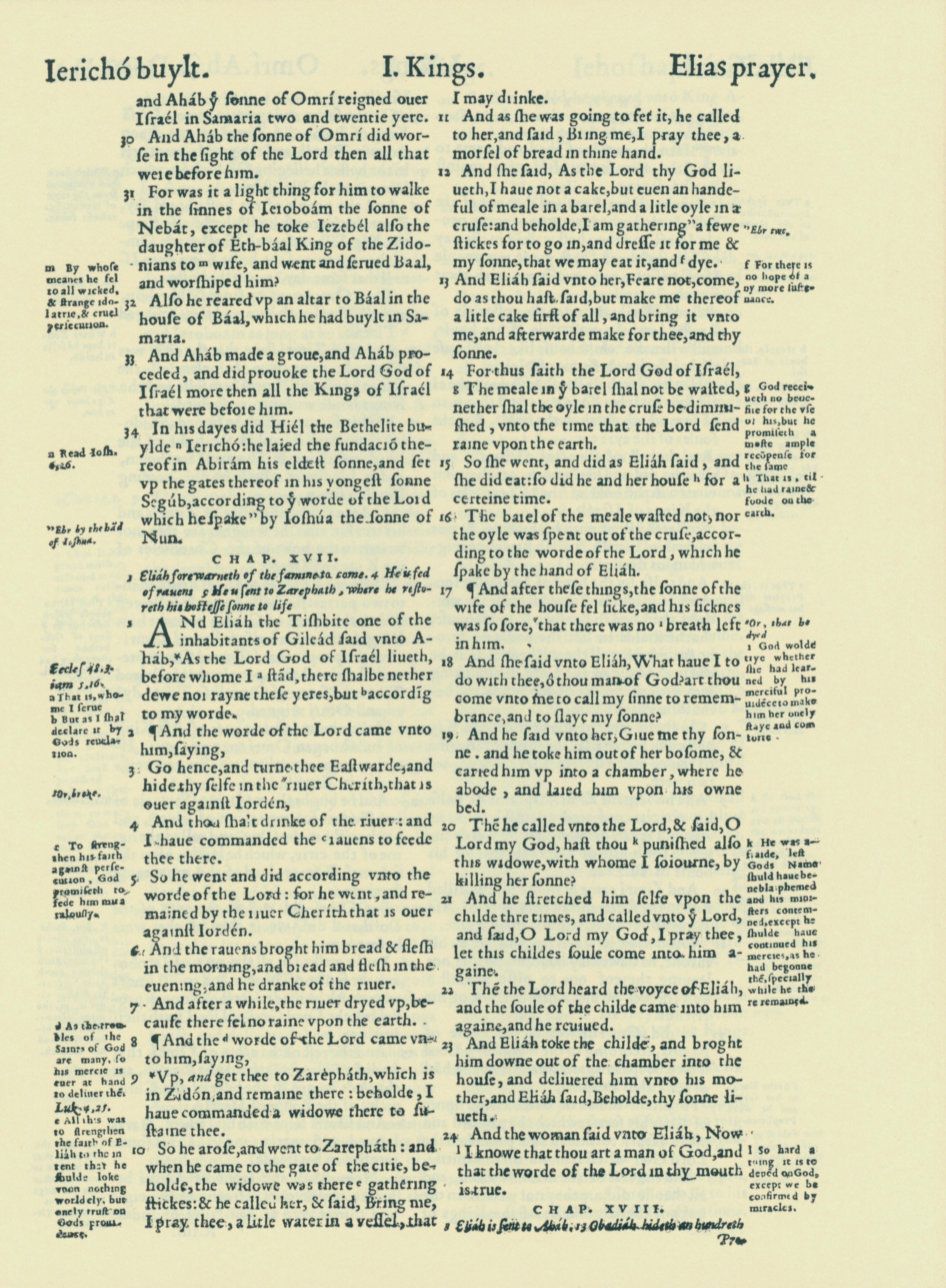 1560年THE BIBLE AND HOLY SCRIPTURES 列王紀上 16 章 30 節到 17 章 24 節